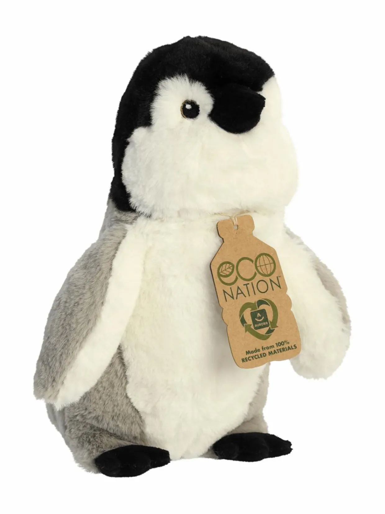 Esittelyssä Aurora Worldin upouusi mallisto – Eco Nation, täysin ekologisesti kestävä pehmolelusarja, joka on valmistettu 100 % kierrätetyistä materiaaleista. Me haluamme myötävaikuttaa vihreämmän Maan luomiseen, ja Eco Nationin avulla voit tuoda kotiisi erityisen eläinystävän, joka tuntuu äärimmäisen pehmeältä ja laadukkaalta ja on valmistettu kierrätetyistä muovipulloista! Pehmolelu pingviini on valkoharmaa ja sillä on ihastuttavat kirjaillut silmät, ja sen kaulassa roikkuu Eco Nationin pullon muotoinen lappu, joka on myös valmistettu 100 % kierrätetyistä materiaaleista.