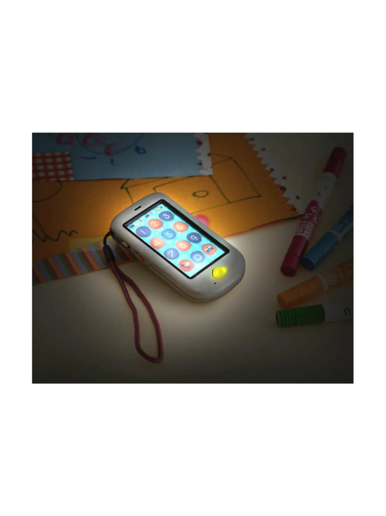 Kosketusnäyttö opettaa numeroita sanomalla numeron ääneen samalla kun sitä painetaan. Äänitä ja kuuntele. Voitte jättää viestejä toisillenne! Kun puhelinta on pidetty 8 sekuntia passiivisena, se soittaa sinulle. Mukana neljä laulua kuunneltavaksi. Ihan kuin oikea puhelin!