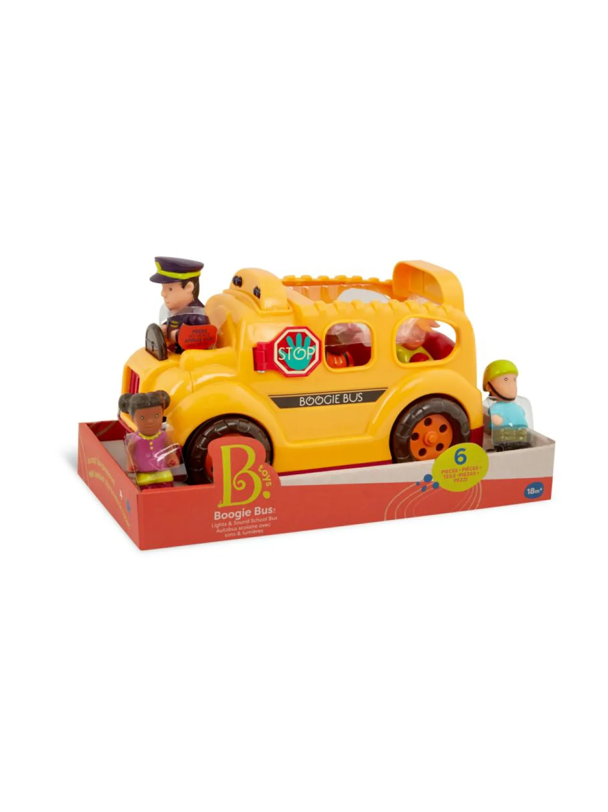Paina kuljettajan päätä saadaksesi bussin liikkeelle. Odotettuasi muutaman hetken bussi pysähtyy ottamaan matkustajia kyytiin. Boogie -bussin valot ja äänitehosteet lisäävät leikin viehätystä.