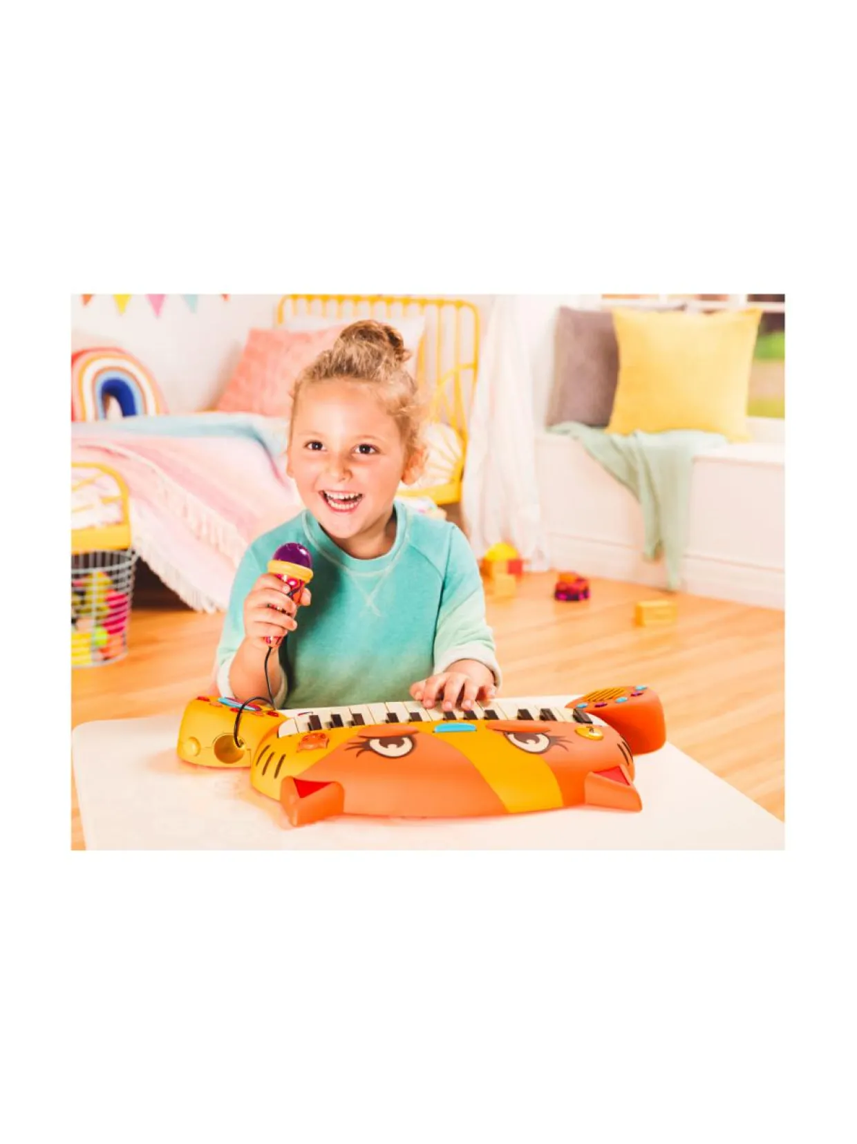 Ei sovellu alle 2-vuotiaille. Pitkä johto. Kuristumisvaara. Paristojen turvallisuustiedot: Älä yhdistä eri paristotyyppejä. Älä käytä uusia ja vanhoja paristoja samanaikaisesti. Älä lataa kertakäyttöparistoja. Ladattavat paristot tulee poistaa lelusta ennen lataamista. Ladattavat paristot tulee ladata aikuisen valvonnassa. Älä aiheuta oikosulkua. Poista tyhjät paristot lelusta välittömästi. Älä heitä lelua tuleen – paristot voivat räjähtää tai alkaa vuotaa. Tyhjät paristot ja rikkinäiset elektroniikkalelut tulee toimittaa niille soveltuviin kierrätyspisteisiin. Poista kaikki pakkausmateriaalit ennen lelun antamista lapselle. Pakkaus on valmistettu kierrätysmateriaalista. Kierrätä tyhjä pakkaus.Tuotenumero1539705 Ikäsuositus2+ Paristo sisältyyKyllä Paristojen määrä4 ParistotyyppiAA/LR6 Avainsanatleikkipiano, lasten soitin, soittolelu, sähköpiano lapsille, värikäs piano, lasten musiikkilelu, b. toys piano