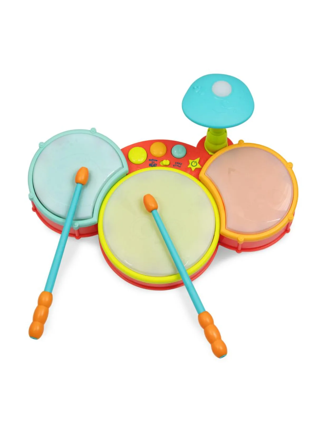 VAROITUS! Jotkut ihmiset voivat saada kirkkaista välkkyvistä valoista epilepsiakohtauksen.Tuotenumero1542726 Ikäsuositus2+ Paristo sisältyyKyllä Paristojen määrä3 ParistotyyppiAA/LR6 Avainsanatrumpusetti, lasten rumpusetti, b. toys rumpusetti, musiikkilelu, lasten soitinsetti, rumpu lapsille, rytmilelu