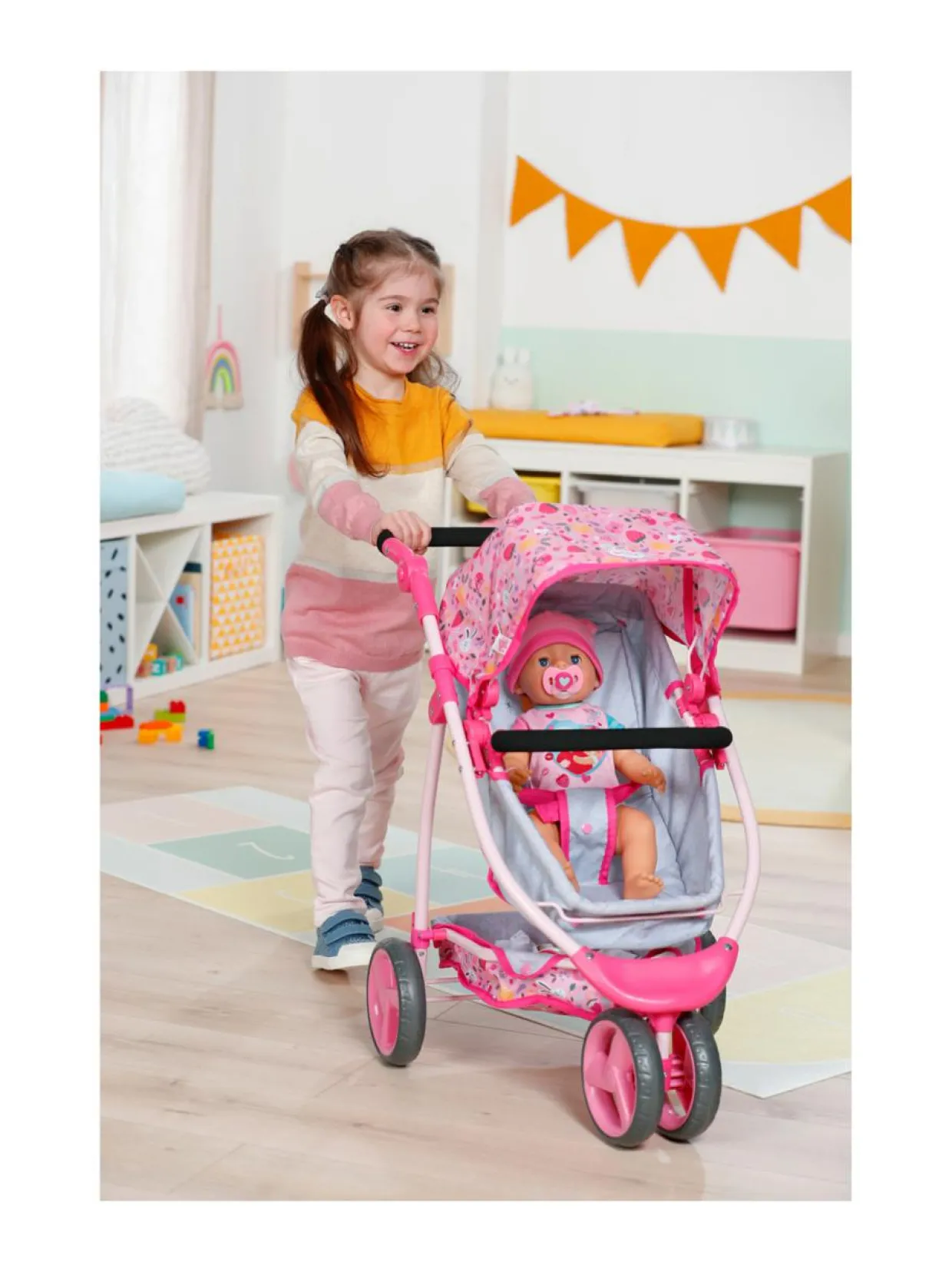 Esittelyssä Baby Bornin Deluxe-vaunut, joissa on ylimääräinen ”istuin” nallelle tai muulle pehmokaverille! Rattaissa on huimia ominaisuuksia, kuten irrotettava kori ja lisätilaa tavaroille. Lisäksi ne voi säätää juoksurattaiksi. Koska rattaat ovat kokoontaitettavat ja niissä on säädettävä kahva, on niitä helppo liikuttaa ja mukauttaa. Rattaat sopivat täydellisesti lapsesi suosikkipehmolelun kuljettamiseen Baby Born -nuken rinnalla.