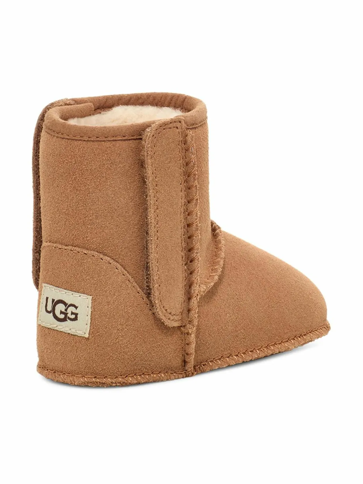Tässä on vauvan ensimmäinen UGG® Classic -kenkä! Vauvan UGG-tossut on valmistettu mokkanahasta ja niiden pörröinen kierrätysvillasekoitevuori säätelee tehokkaasti lämpötilaa. Tossujen sivuilla on tarrat, joiden ansiosta pukeminen ja riisuminen on helppoa. 10 mm paksuinen UGGplush™-vuori sisältää 60 % kierrätettyä villaa ja 40 % lyocellia.