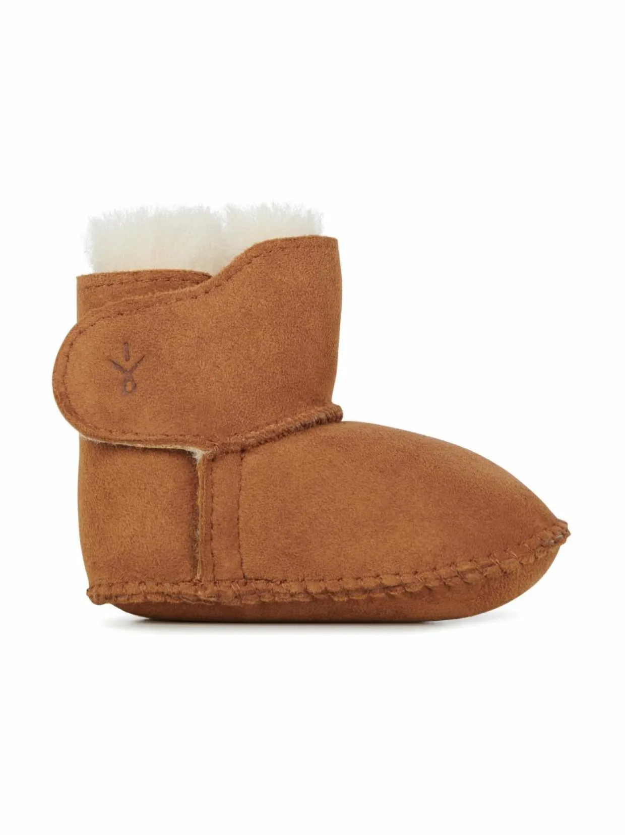 EMU Australia -merkin suloiset vauvojen tossut on valmistettu pörröisestä kaksipuolisesta australialaisesta lampaannahasta, joka pitää jalat lämpiminä ja mukavina vuodenajasta riippumatta. Pehmeä pohja mahdollistaa kehittyvien jalkojen taipumisen ja vahvistumisen, kun taas tarranauhallinen sivuliuska helpottaa pukemista ja riisumista.