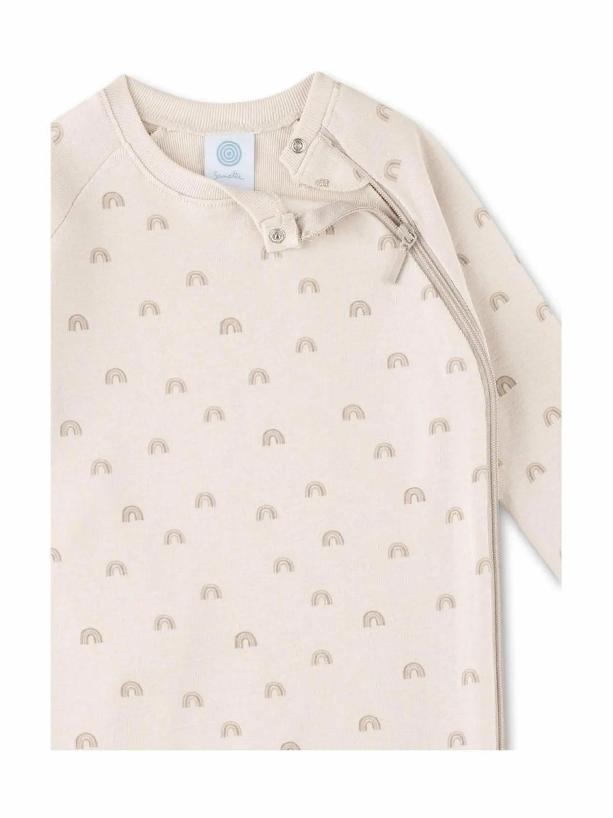 Sanetta Baby Unisex -haalari on pehmeä valinta vauvalle. Tämä kokopitkä haalari on valmistettu luomupuuvillasta, joka tuntuu miellyttävältä ihoa vasten ja hengittää hyvin. Haalarissa on suloinen sateenkaarikuosi sekä kätevä, viistosti kulkeva vetoketju, joka helpottaa pukemista ja riisumista. Lahkeensuissa on säädettävät varvasosat – lahkeiden pituutta voi helposti muuttaa, jolloin haalari kasvaa lapsen mukana.