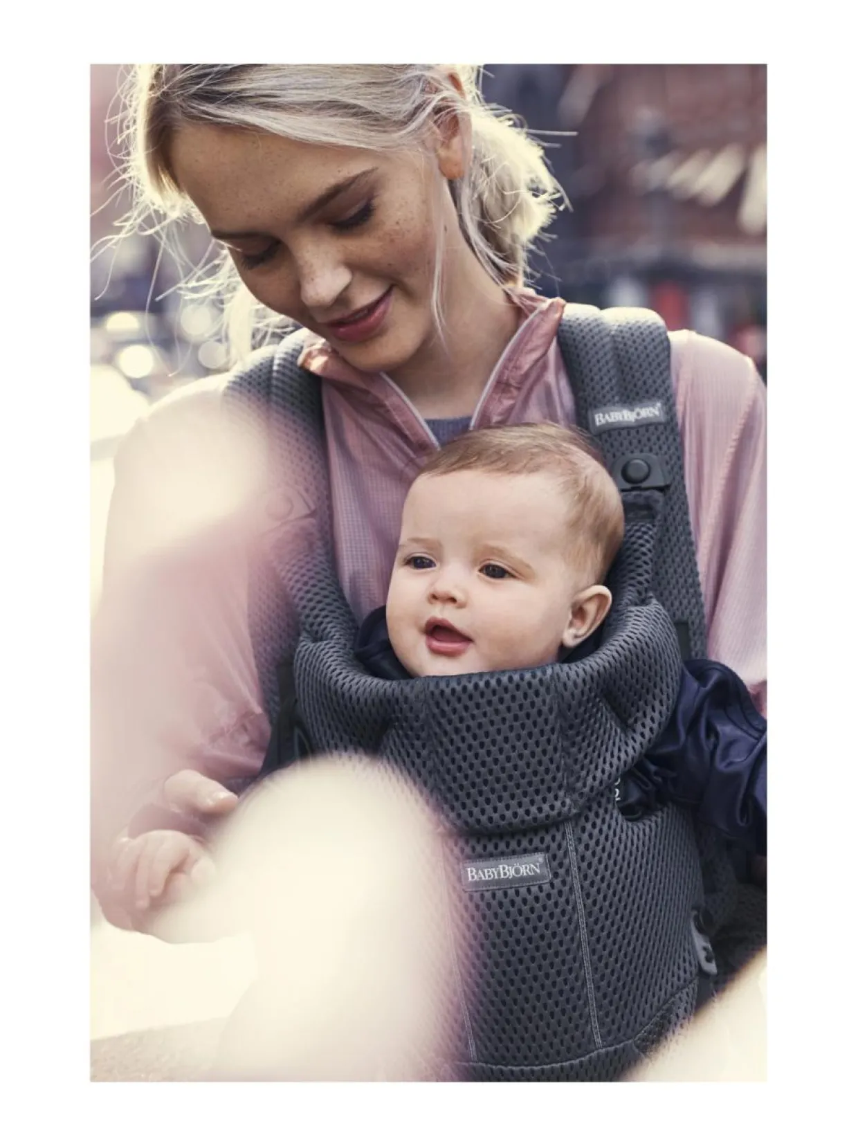 BabyBjörn Move rintarepussa voit kantaa lasta vastasyntyneestä 12 kiloon asti. Move on päivitetty malli BabyBjörnin Miracle rintarepusta. Move on valmistettu ergonomiseksi ja mukavaksi niin lapselle kuin kantajallekin. Rintarepussa on erinomainen tuki kantajan selälle ja lantiolle ja se on helppo pukea päälle. Kangas on ilmavaa ja nopeasti kuivavaa 3D mesh-verkkokangasta.