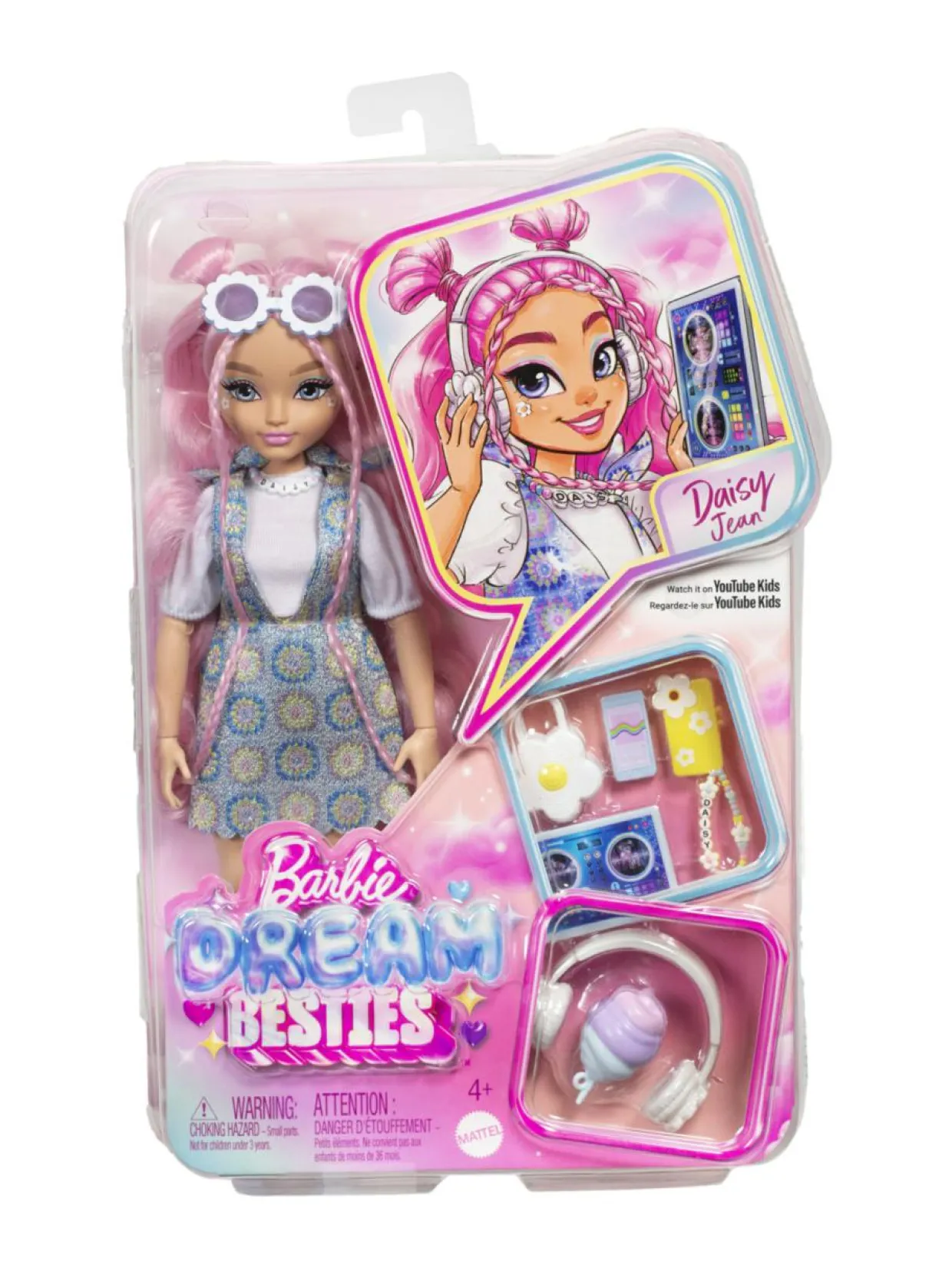Tervehdi Daisya, Barbie® Dream Besties -kokoelman muodikasta ja energistä hahmoa! Setti sisältää 9 DJ- ja musiikkiaiheista tarviketta, jotka tekevät leikistä jännittävää ja innostavat luovuuteen. Täydellinen nukke musiikin ja muodin ystäville!
