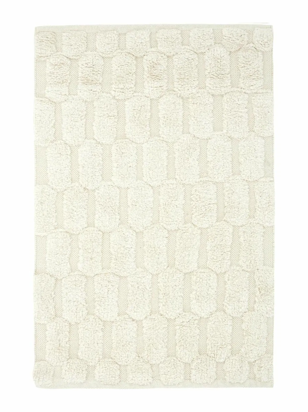 Materiaali97 % puuvilla, 3 % muu kuitu Hoito-ohjeetKonepesu 30°C ValmistusmaaIntia VäriSOFT WHITE Avainsanatmatto, käsin kudottu, puuvilla, sisustus, tuftattu matto