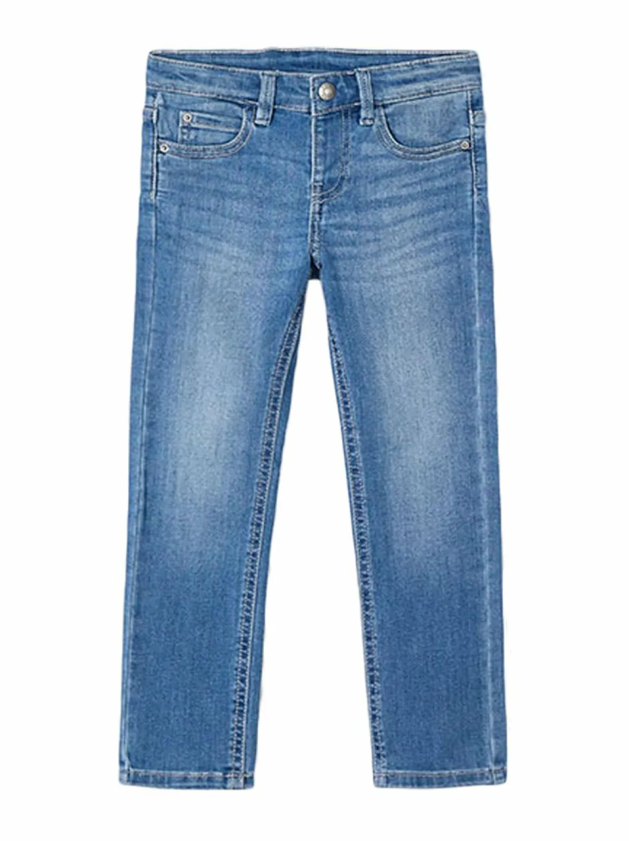 Mayoralin Basic slim fit -farkut ovat kestävä valinta arkeen. Farkuille on tehty kulutuspesu, joka viimeistelee niiden casual-ilmeen. Mallissa on 5 taskua sekä kiinnitys napilla ja vetoketjulla. Vyötäröllä takana on logopaikka.