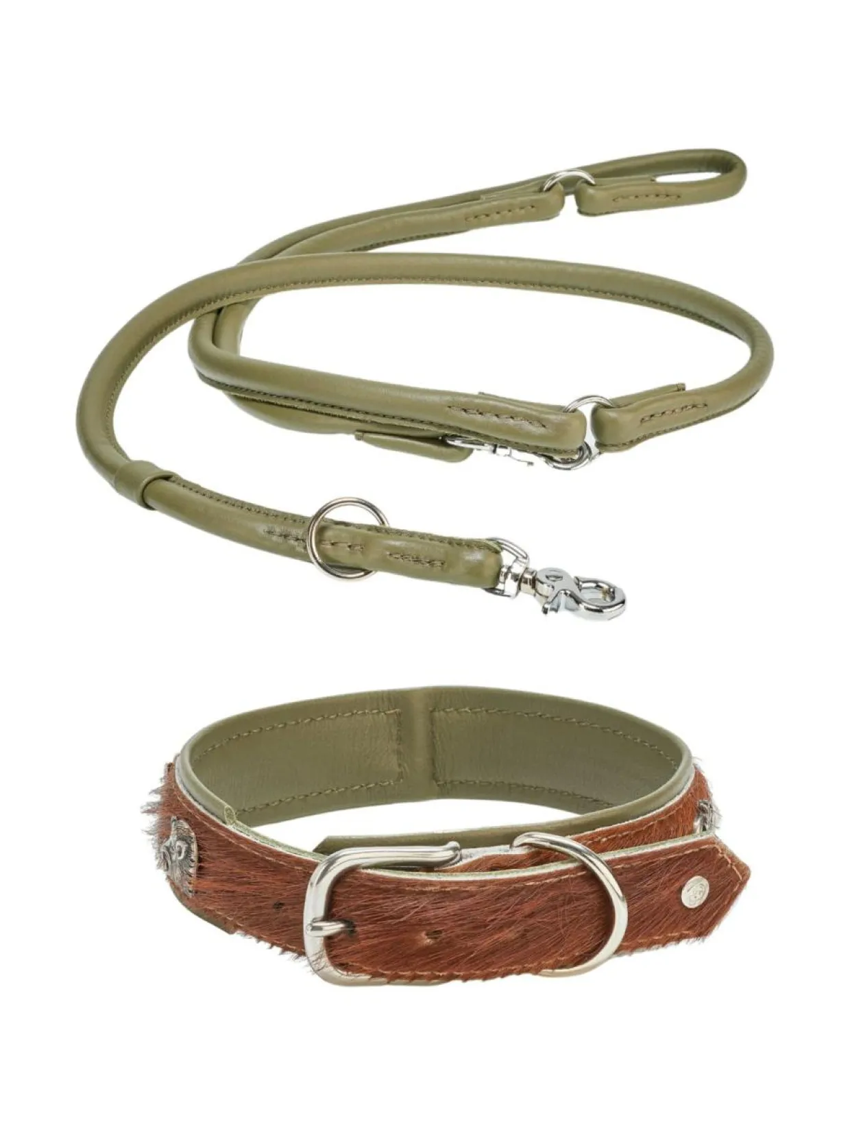 Pyöreä, ommeltu, 3-suuntaisesti säädettävä tummanvihreä Amici talutushihna tarjoaa erityisen pehmeän tunteen taluttaessa. Vahvan ompelun lisäksi hihnan ydin on vahvistettu nailonilla lisäämään kestävyyttä. Kaulaa vasten olevan alapuolen samettisen pehmeä nupukkinahka sopii hyvin myös herkille koirille.