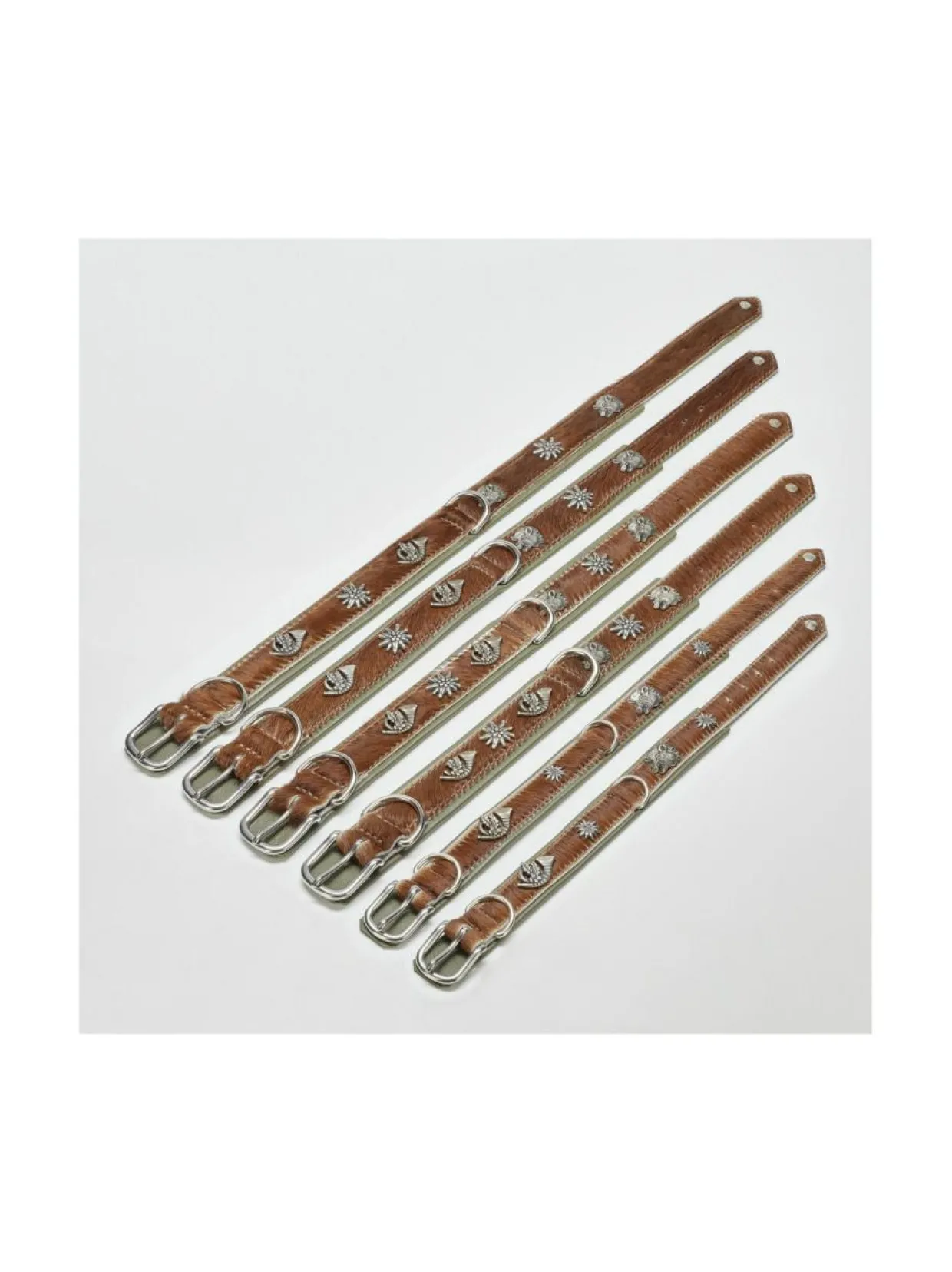 Tämä taidokkaasti käsintehty, erityisen pehmeästä nappanahkasta sekä koristeellisesta lehmännahkasta valmistettu Bavaria kaulapanta ja talutushihna antavat parhaan käyttömukavuuden sekä sinulle että koirallesi. Pannassa on täydelliset saumat, laadukkaat kiinnikkeet sekä kiinteä karbiini takaamassa turvallisuutta. Pyöreä, ommeltu, 3-suuntaisesti säädettävä talutushihna tarjoaa erityisen pehmeän tunteen taluttaessa. Vahvan ompelun lisäksi hihnan ydin on vahvistettu nailonilla lisäämään kestävyyttä. Kaulaa vasten olevan alapuolen samettisen pehmeä nupukkinahka sopii hyvin myös herkille koirille.