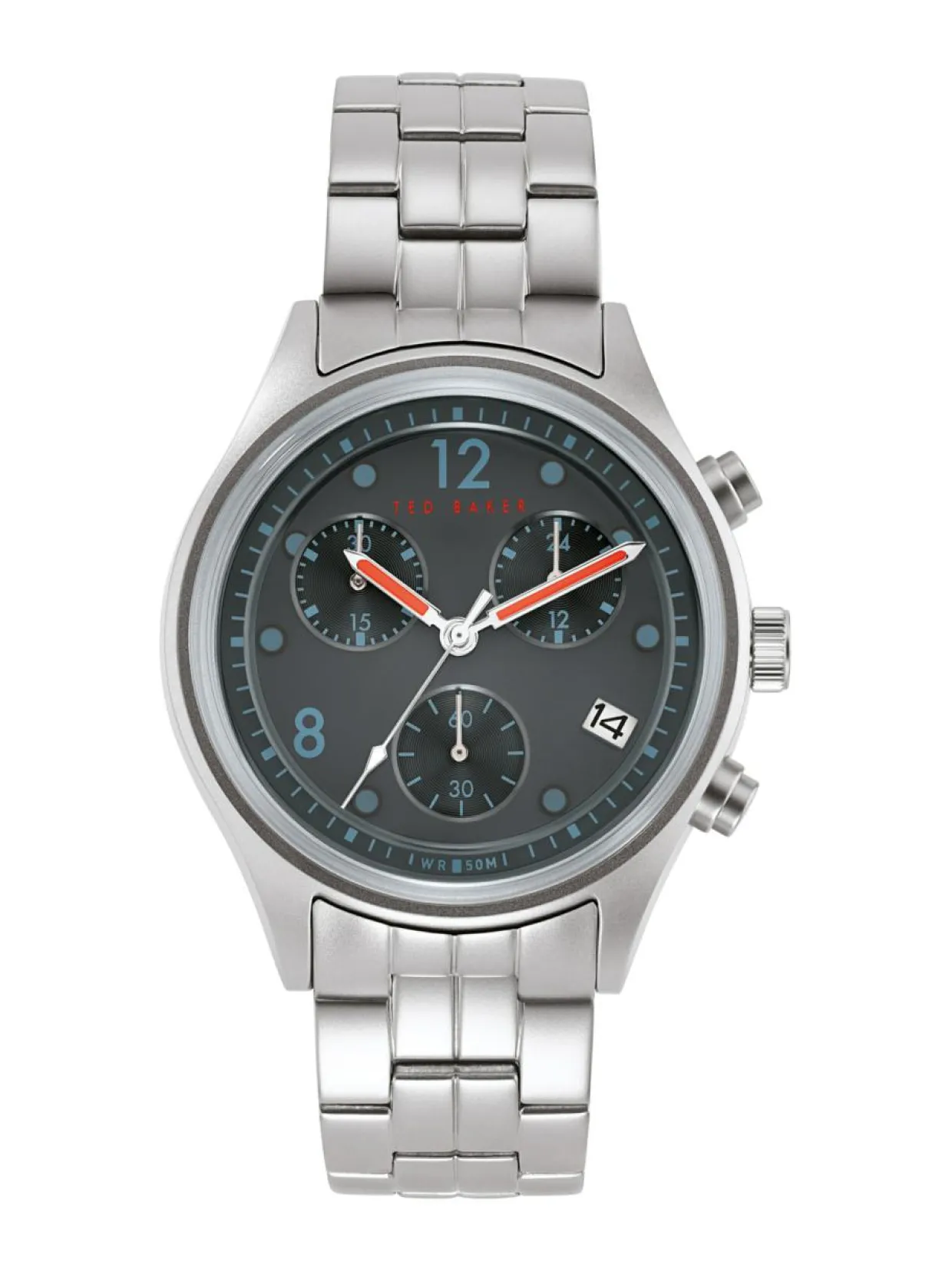 Ted Baker Beleeni 42mm chrono tuo sporttisen lisän asukokonaisuuteen. Kellon runko on valmistettu ruostumattomasta teräksestä. Sen leveys on 42mm ja paksuus on 11,5mm. Kellon metalliranneke on ruostumatonta terästä. Kellossa on harmaa taulu ja luminoidut viisarit. Taulua suojaa mineraalilasi. Kellossa on VR34-kvartsikoneisto ja sen vesitiiviys on 5ATM. Ted Baker kelloilla on 2 vuoden takuu.