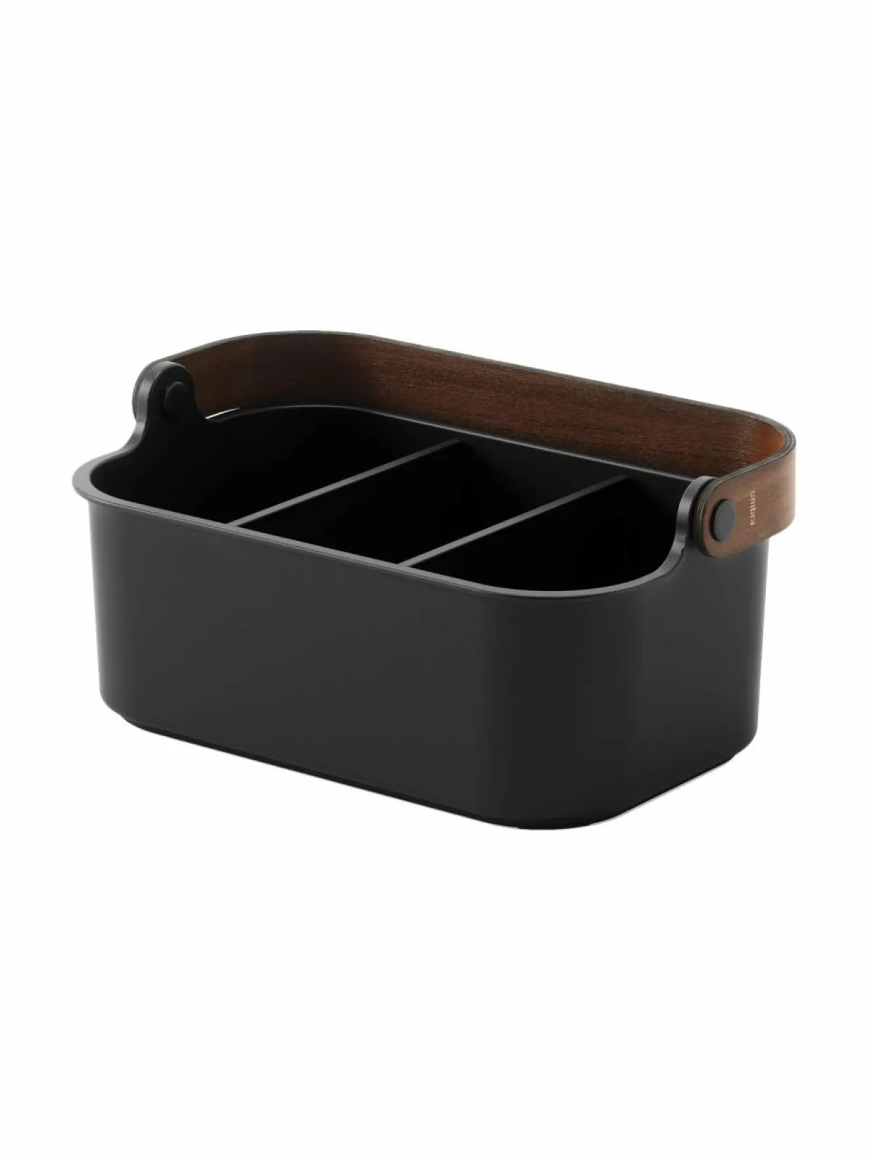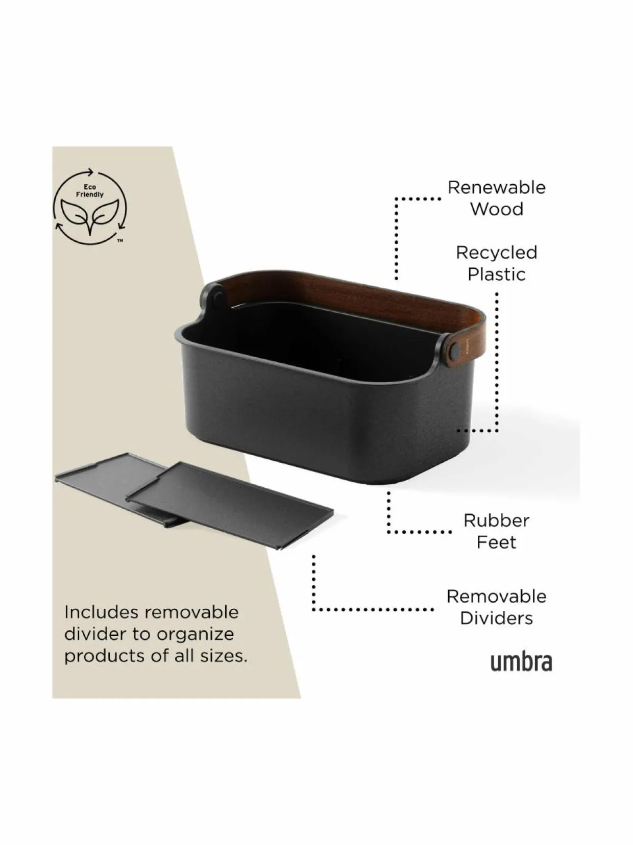 Umbran Bellwood-kori on käytännöllinen ja moderni säilytyslaatikko, jossa on kolme osastoa. Tilanjakajat ovat irrotettavia, joten voit helposti mukauttaa sen eri kokoisille tavaroille. Laatikon materiaalina on käytetty myös kierrätysmuovia. Puinen kahva lisää käyttömukavuutta. Bellwood-kori sopii erinomaisesti esimerkiksi toimistotarvikkeiden, kosmetiikan tai käsityötarvikkeiden säilytykseen.