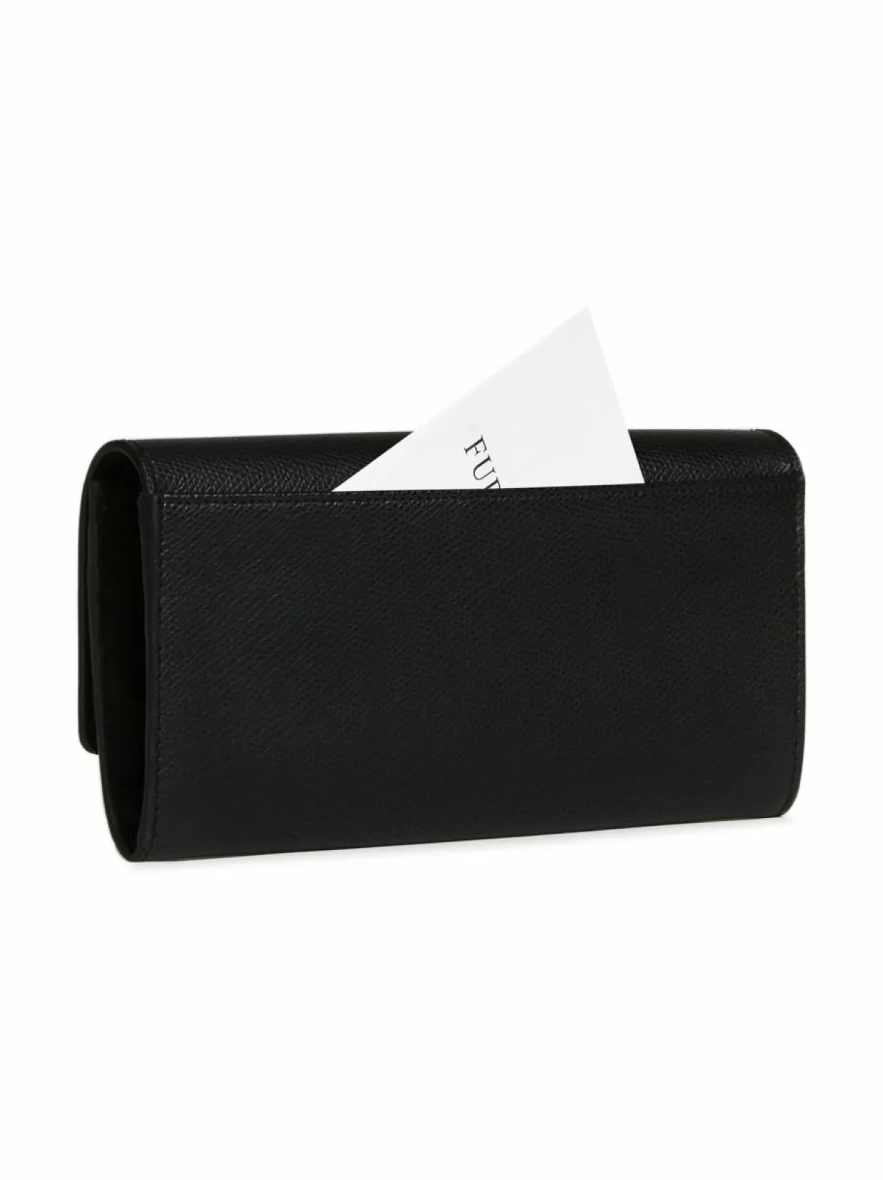 Furlan tilavassa Bi-Fold XL -nahkalompakossa on hyvin tilaa korteille ja käteiselle. Lompakko suljetaan näyttävällä metallisoljella.
