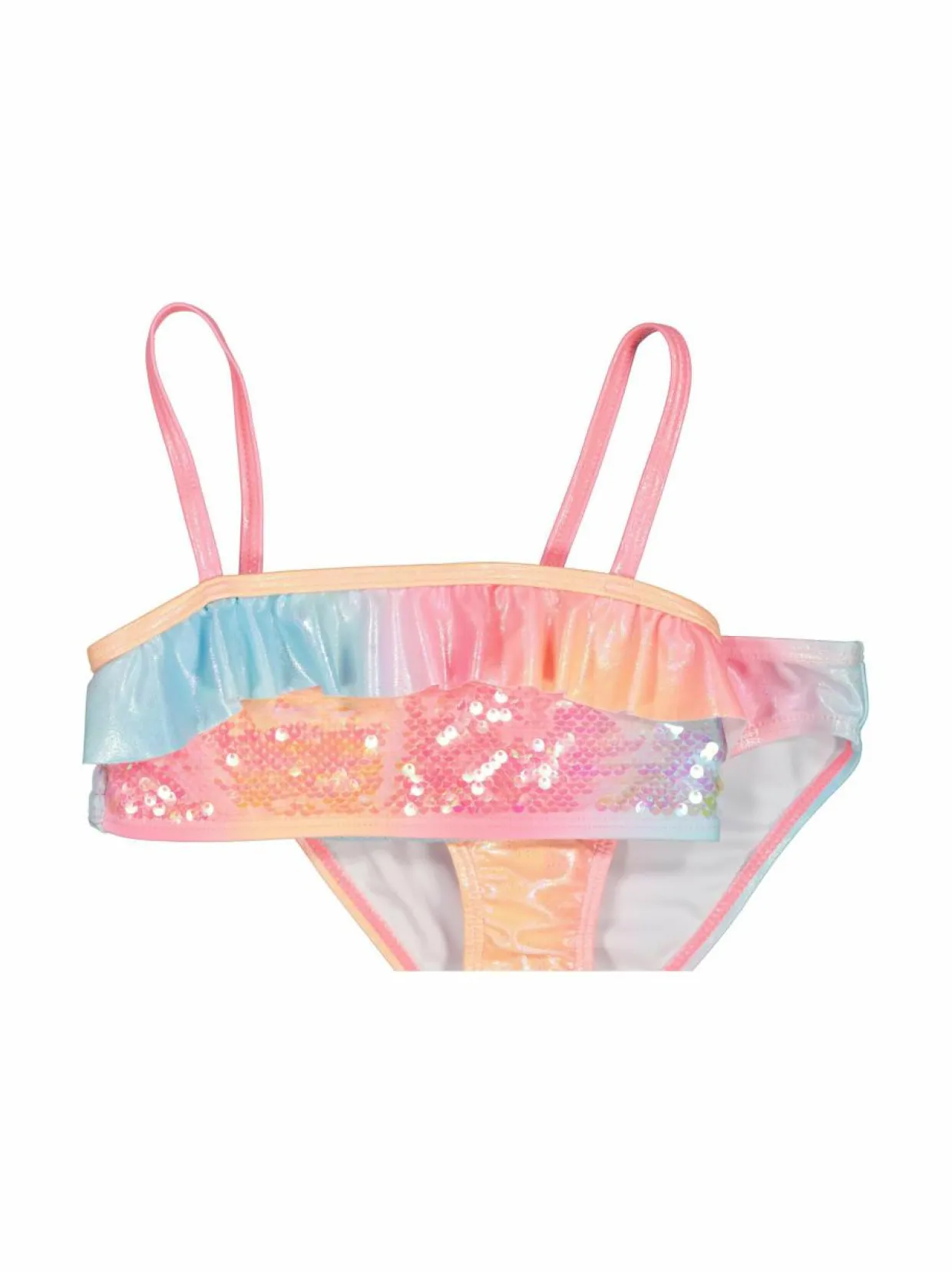 Paljettisomisteiset bikinit pienille merenneidoille. Bikiniyläosassa on elegantti röyhelöyksityiskohta. Materiaali on joustava sekä nopeasti kuivuva.
