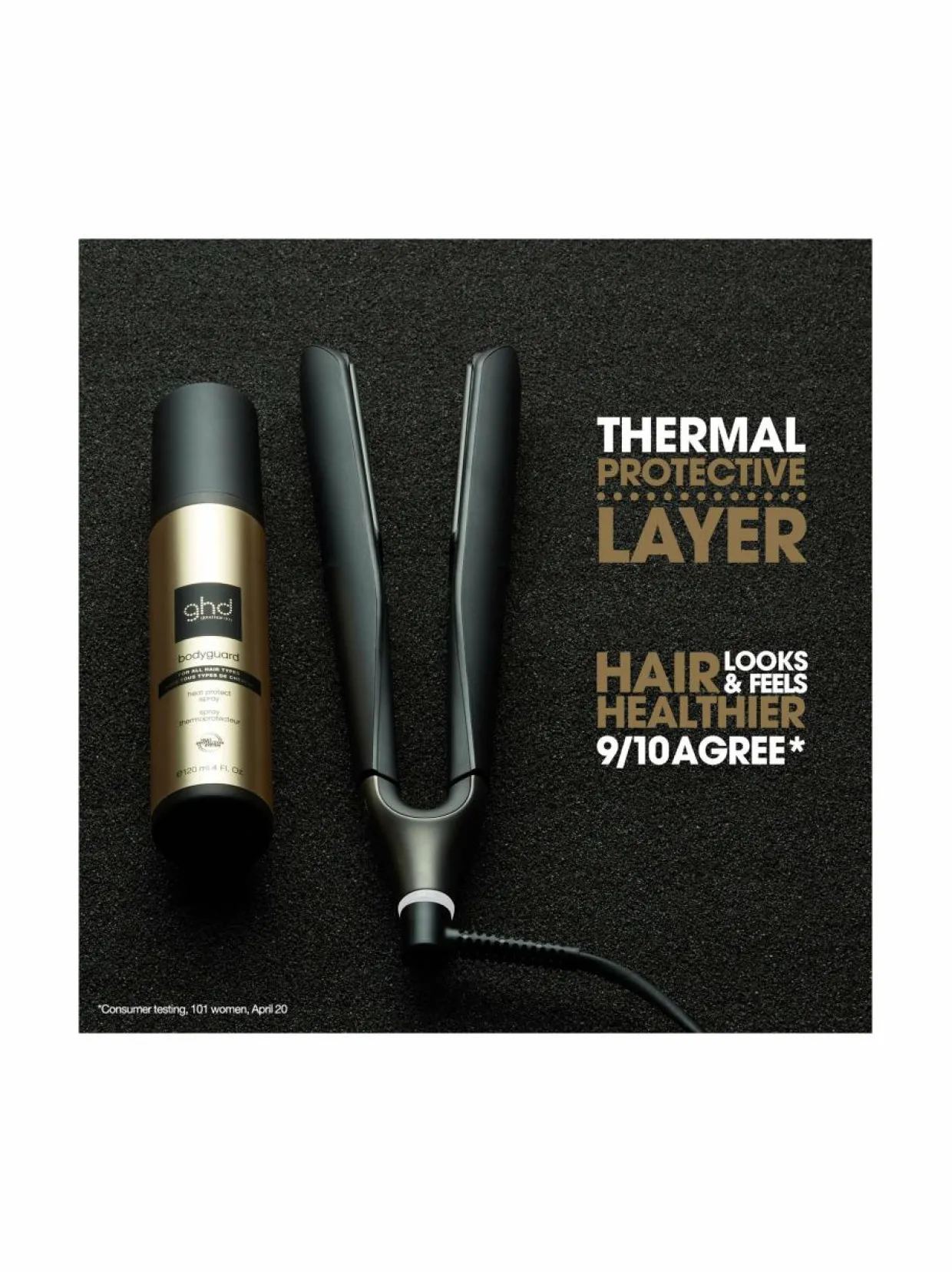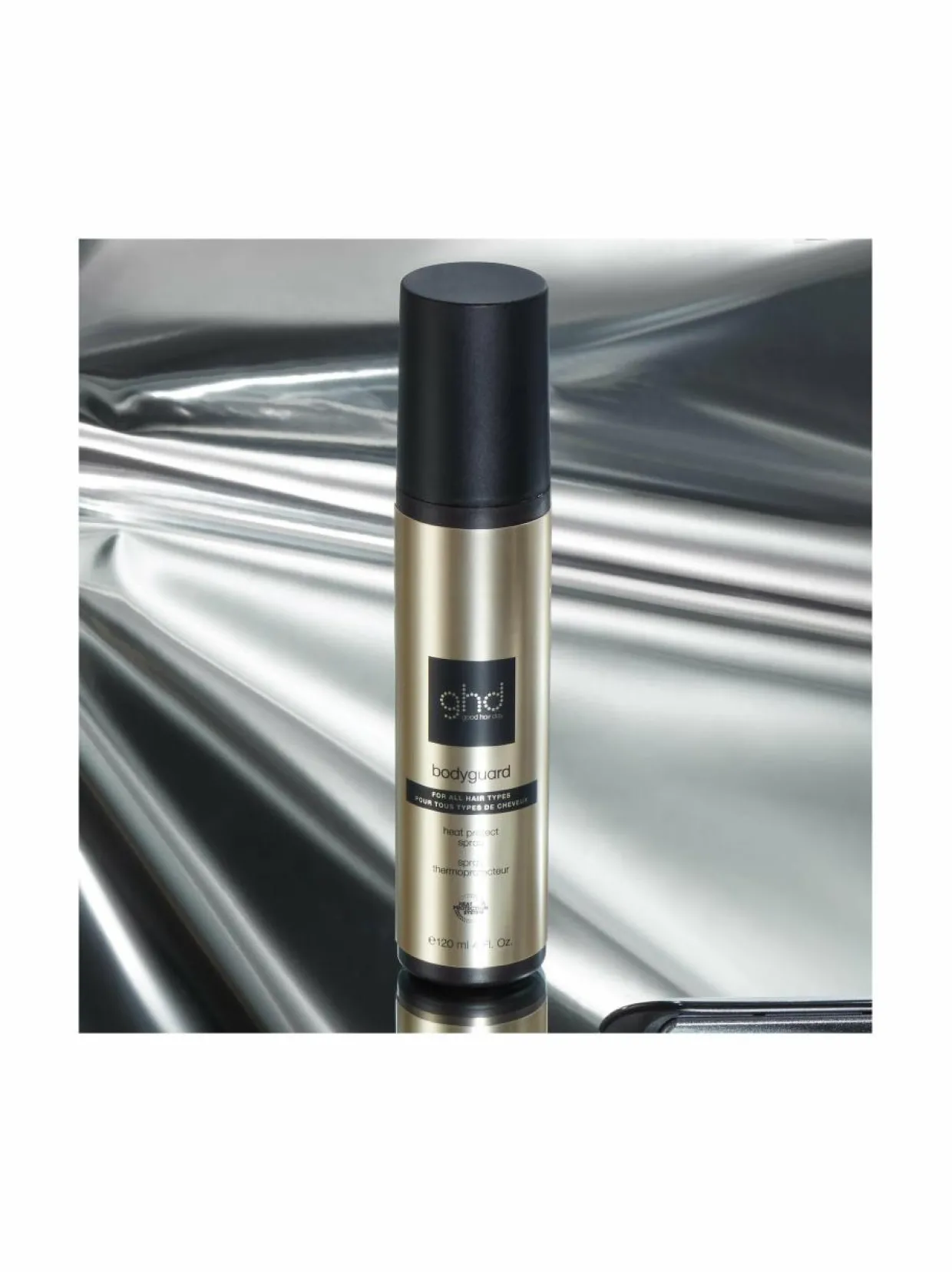 ghd:n uusi ja myydyin lämpösuojasuihke on: Bodyguard-lämpösuojasuihke.ghd Bodyguard on ghd:n hiusmuotoilijoiden ja lämpöasiantuntijoiden suunnittelema lämpösuojasuihke, jonka avulla luot ammattilaistason kampauksia lämpötyökaluilla murehtimatta hiusten vaurioitumista.Polymeerien ja hoitavien ainesosien ansiosta ghd:n lämpösuoja auttaa ehkäisemään hiusten pintakerroksen vahingoittumista silottamalla niiden pintaa. Suihke peittää jokaisen hiuksen, suojaa niitä päivittäiseltä muotoilulta ja saa hiukset näyttämään ja tuntumaan terveemmiltä. 9/10 on samaa mieltä*.Kevyt ja näkymätön koostumus sopii kaikille hiustyypeille. ghd Bodyguard maksimoi hiusten lämpömuotoilun, kiharruksen, laineet tai suoristuksen. Saat ammattilaistason tulokset käyttämällä ghd Platinum+ -suoristusrautaa ghd:n Bodyguard-hiussuihkeen kanssa. Suojaaminen on aina ajankohtaista.