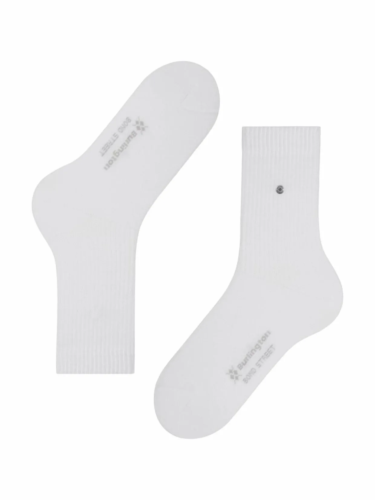 Burlingtonin mukavat nilkkasukat ribatulla tekstuurilla päivittäiseen käyttöön. Bond Street -sukkien materiaalina on käytetty pehmeän tuntuista kampapuuvillasekoitetta. Metallinen logomerkki on sijoitettu sukan varteen. Vahvistetut kärki- ja kanta-alueet lisäävät sukille kestävyyttä.