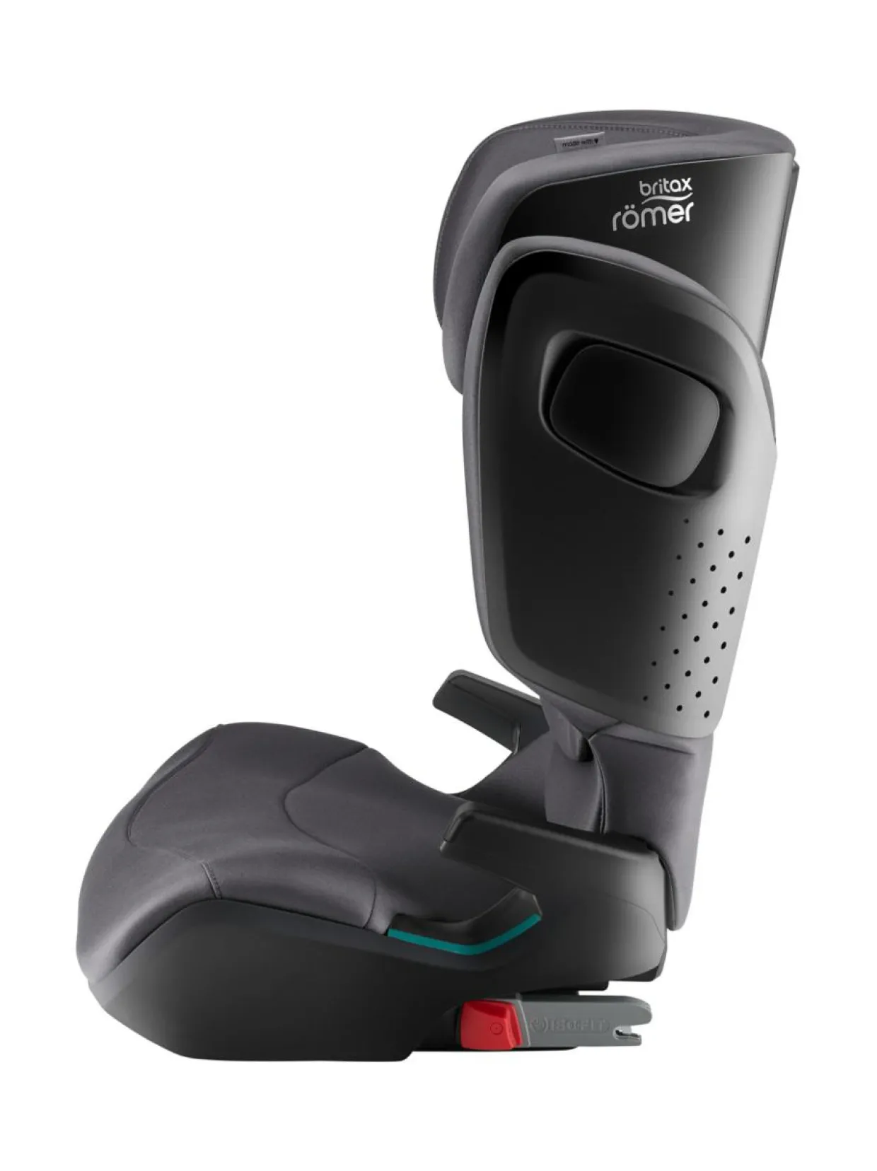 Britax Kidfix Pro M turvavyöistuin sopii 100 – 150 cm lapsille ja se on kehitetty yhteistyössä johtavien autonvalmistajien kanssa. Istuin tarjoaa luotettavaa turvallisuutta ja maksimaalisen mukavuustason. Istuin kiinnitetään autoon kolmipistevyön ja isofix-kiinnikkeiden kanssa, joka takaa turvallisen ja lujan kytkennän turvaistuimen ja auton välille, vaikka lapsi ei istuisi istuimella. Rauhoittava napsautus takaa, että istuin on turvallisesti asennettu. Turvavyöistuin on mahdollista kiinnittää myös pelkällä kolmipistevyöllä tarpeen mukaan. Turvaistuimen kapea runko sopii moniin autoihin, mikä tekee siitä ihanteellisen valinnan kasvavan perheen tarpeisiin. Kidfix Pro M turvaistuimia on mahdollista saada rinnakkain moniin automalleihin kolme vierekkäin auton takapenkille.
