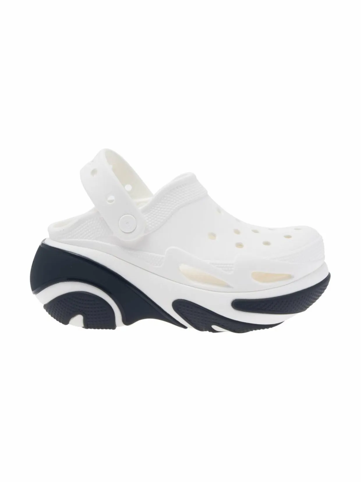 Näissä rohkeissa clogeissa saat katseet kääntymään – katutyyli kohtaa huippumuodin, ja voit tuoda esille ainutlaatuista tyyliäsi. Muotoilultaan sulavalinjaisissa Bubble Crush Clog -kengissä on liioiteltu, kaksivärinen kumiosa pohjassa, tyylikkäitä yksityiskohtia ja korokepohja, jolla nostat asun kuin asun aivan uudelle tasolle. Nämä kengät on suunniteltu korostamaan itseilmaisua, ja niin kantaremmin kuin päällisenkin voi koristella Jibbitz™-koruilla. Sujauta Bubble Crush Clog -kengät jalkaan ja ole rohkeasti oma itsesi!