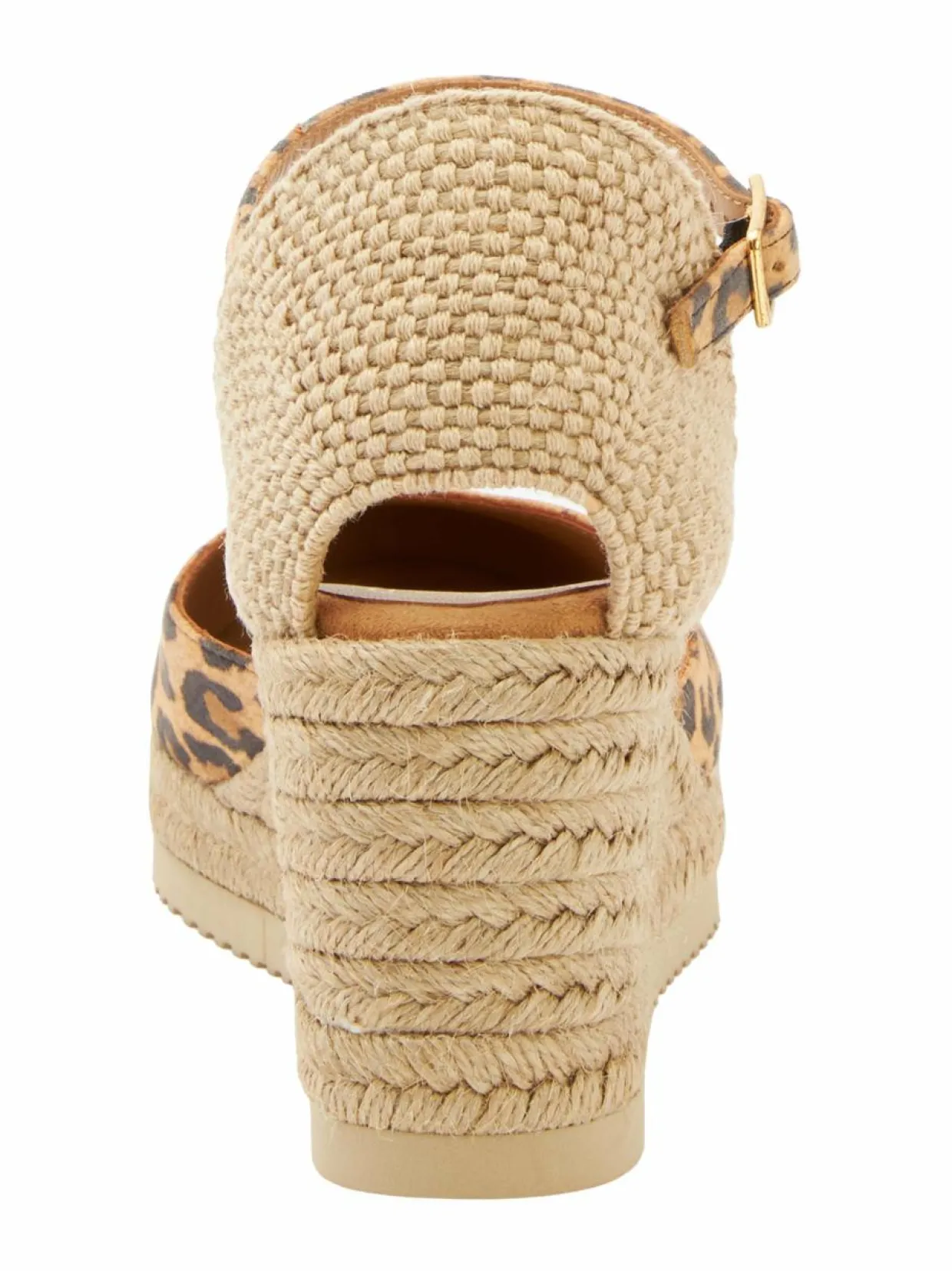 Näyttävät korkeakorkoiset espadrillot Unisa merkiltä. Yksityiskohtana leopardikuosinen nahkainen kärki, klassinen juuttipunos ja kapea säädettävä nilkkaremmi. Caceres-espadrillot sopivat ihanteellisesti täydentämään kesäistä asukokonaisuutta. Jalkineen pohjassa on liukumaton materiaali.