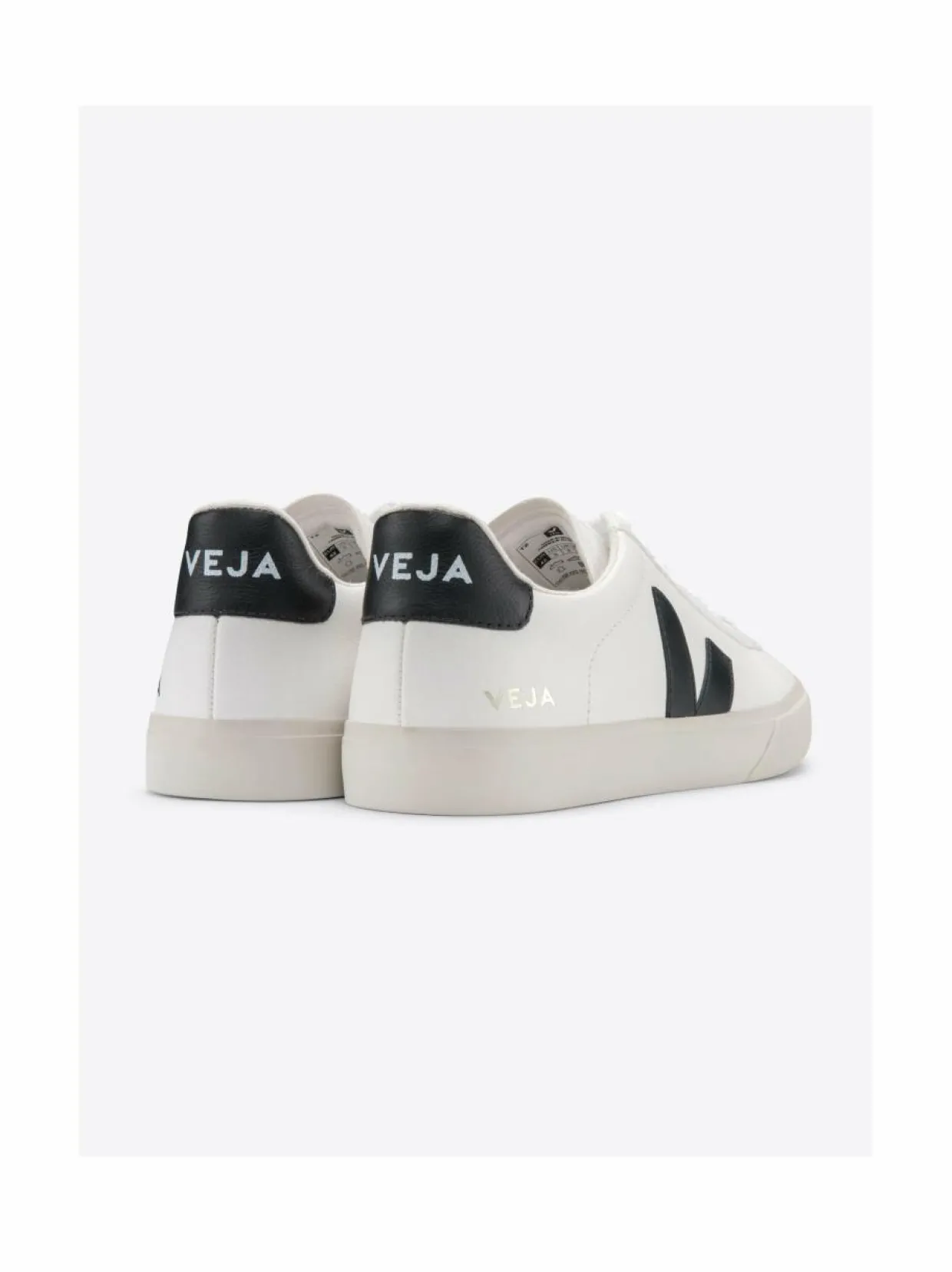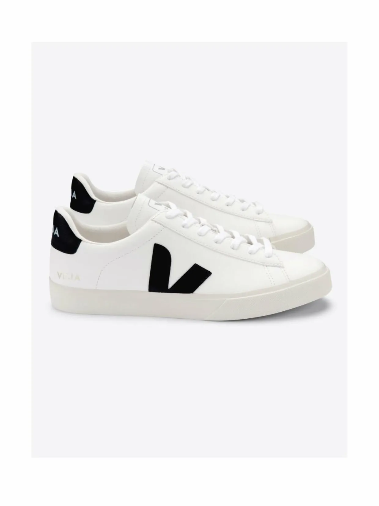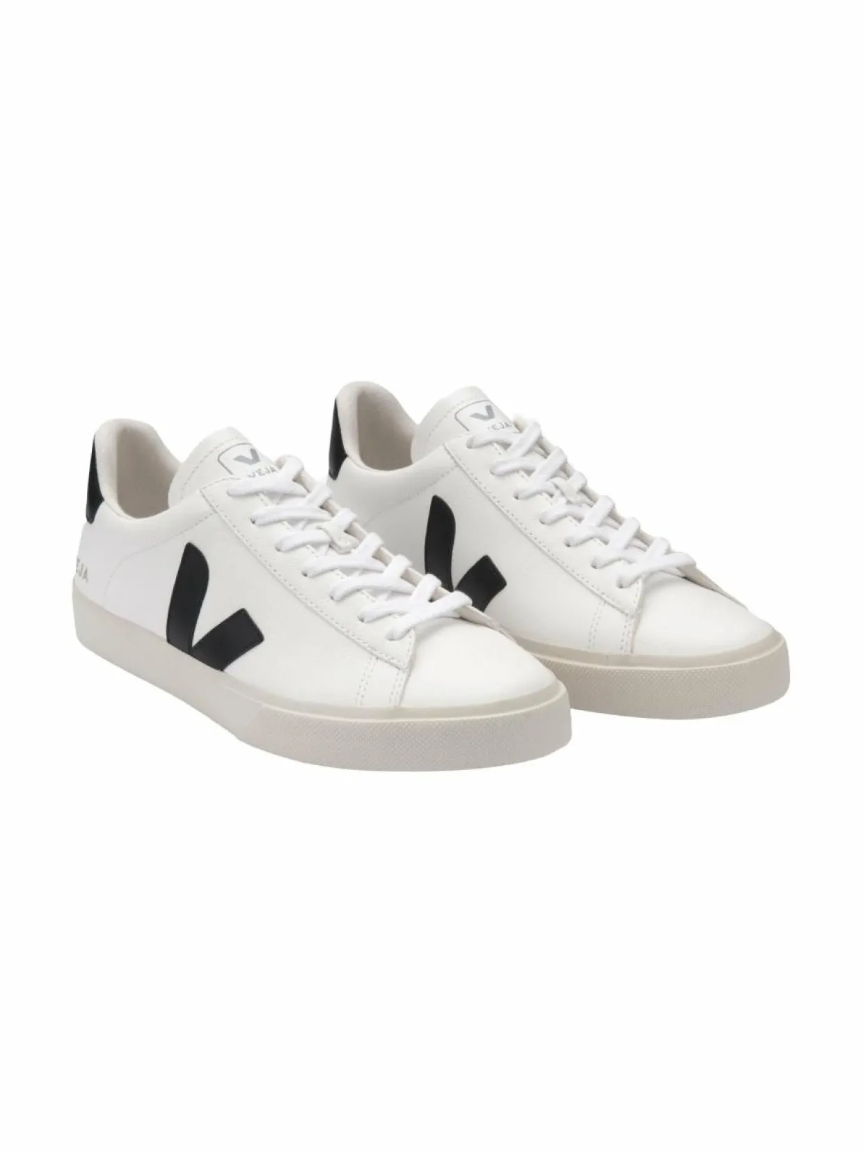 Pyöreäkärkisten VEJA Campo -tennareiden valmistuksessa on käytetty kierrätettyjä ja ympäristöystävällisempiä materiaaleja. Kenkien päällinen on kestävää ChromeFree-nahkaa. Vuorikangas on valmistettu kierrätetyistä muovipulloista. Logoyksityiskohdat viimeistelevät ilmeen.