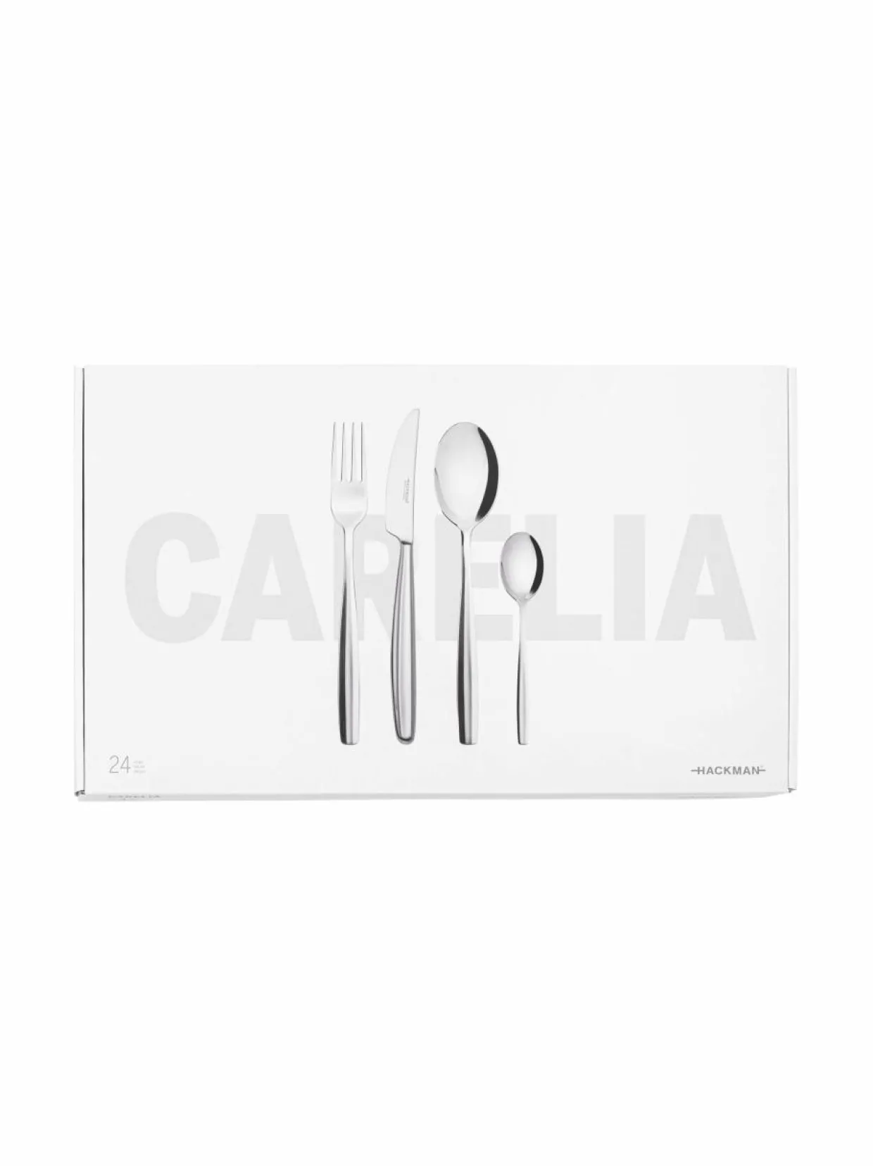Jo 1960-luvun alussa esitelty aterinsarja sopii edelleen niin arkikäyttöön kuin juhlapöytäänkin. Suunnittelija Bertel Gardberg löysi saaristosta innoitusta Carelian ajattomaan muotoiluun. Aterinsettiin kuuluu 6 pikkulusikkaa, 6 ruokalusikkaa, 6 ruokahaarukkaa ja 6 ruokaveistä. Kiiltävästä ja ruostumattomasta 18/10-teräksestä valmistetut osat ovat konepestäviä.