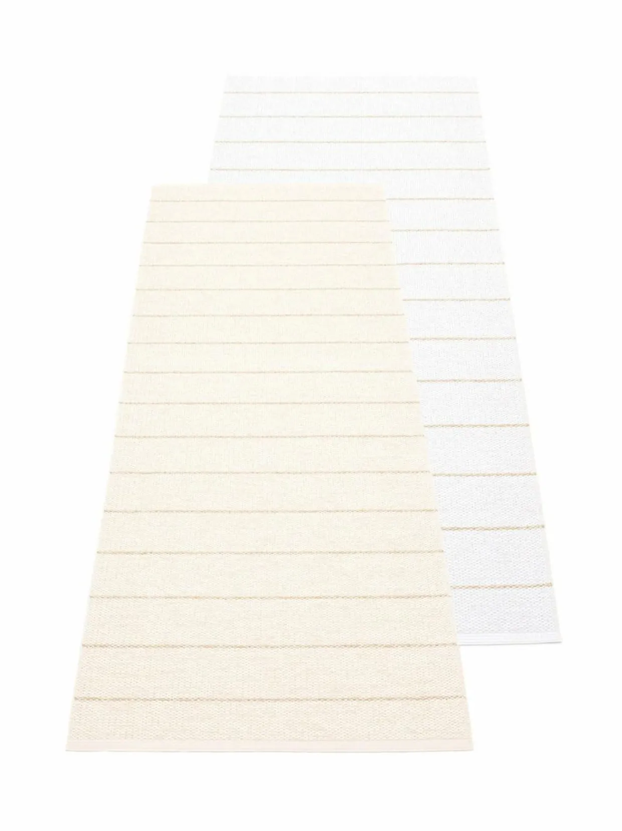 Ruotsin Taalainmaalla käsityönä valmistetut Pappelina-muovimatot ilahduttavat raikkaan skandinaavisella ilmeellään ja käytännöllisyydellään. Polyesteriloimesta ja ftalaatittomasta muovista valmistetut matot sopivat kodin kaikkiin tiloihin ja puhdistuvat helposti käsin tai koneessa. Raidallisesta Carl-muovimatosta on saatavilla useita eri värejä ja kokoja, joista löytyy helposti sopiva matto niin kylpyhuoneeseen, eteiseen, keittiöön kuin lastenhuoneeseenkin. Käännettävän maton toisella puolella on sama kuvio vastakkaisin sävyin.