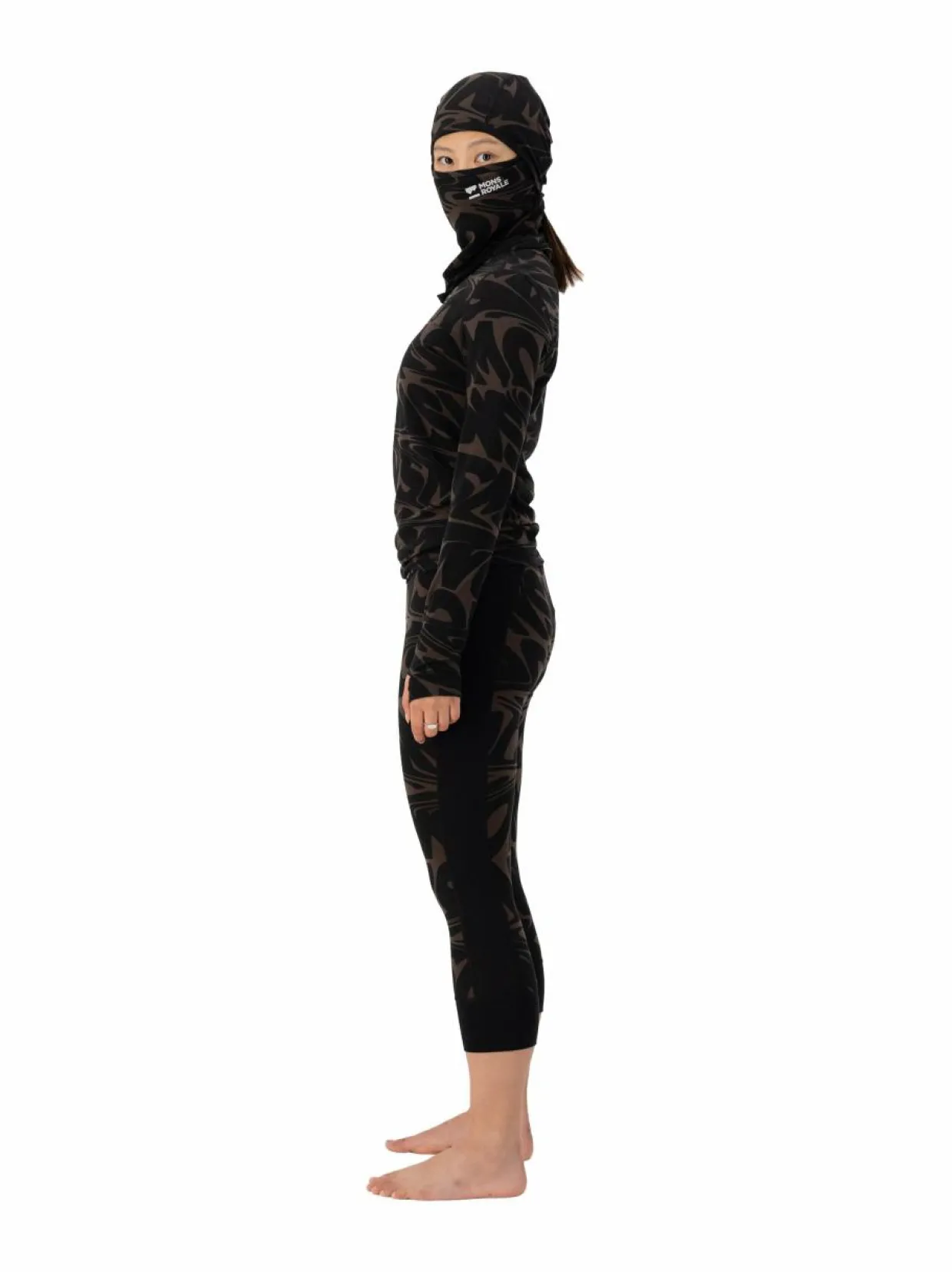 Vartalonmyötäiset leggingsit ovat pehmeää ja joustavaa merinovillaa. Materiaalina on merinovilla hengittävä ja lämpötilaa säätelevä, sen lisäksi merinovilla kestää hyvin kulutusta ja on hajua estävä materiaali. Pitkälahkeisissa housuissa on joustava logollinen vyötärönauha.