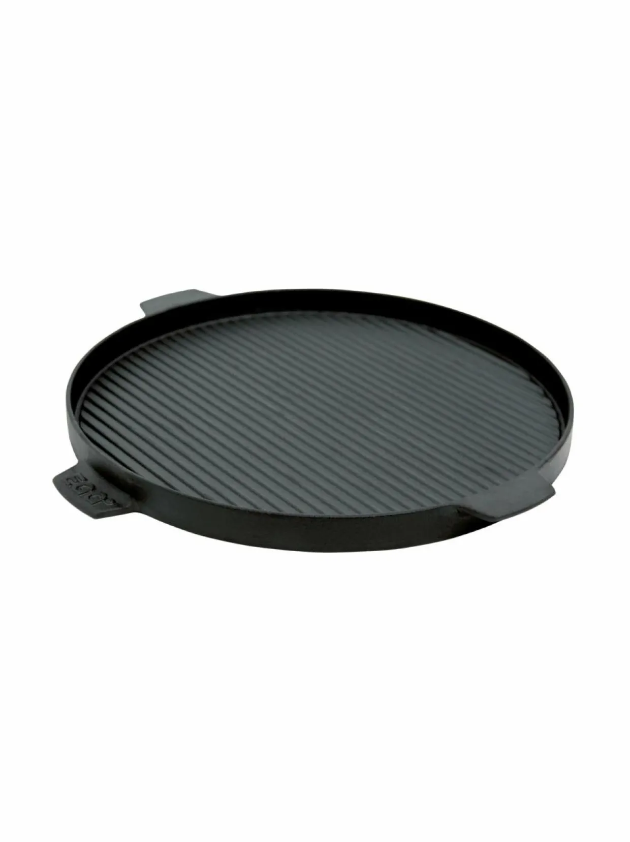 Ovatko raaka-aineet joskus pudonneet EGGin ritilän väliin? Sitä varten valikoimastamme löytyy Big Green Egg Cast Iron Plancha – valurautainen paistolevy, joka tekee grillaamisesta helpompaa ja monipuolisempaa. Sen uritetulla puolella voit valmistaa helposti hajoavia ja pieniä aineksia, kuten vihanneksia tai kalaa. Sileällä puolella taas loihdit vaivattomasti pannukakkuja tai kananmunia. Haluatko täydellisen rapean paistopinnan lihaan säilyttäen sen mehukkuuden? Cast Iron Plancha on täydellinen apuväline ulkokeittiöön. Tämä 35 cm halkaisijaltaan oleva valurautalevy sopii erinomaisesti meribassin paistamiseen nahkoineen, yrttikuorrutetun taimenen kypsennykseen, tai nopeaan vihannesten ja pekonin tiristämiseen. Grillaaminen levyllä on paitsi nopeaa ja helppoa, myös koukuttavan herkullista.
