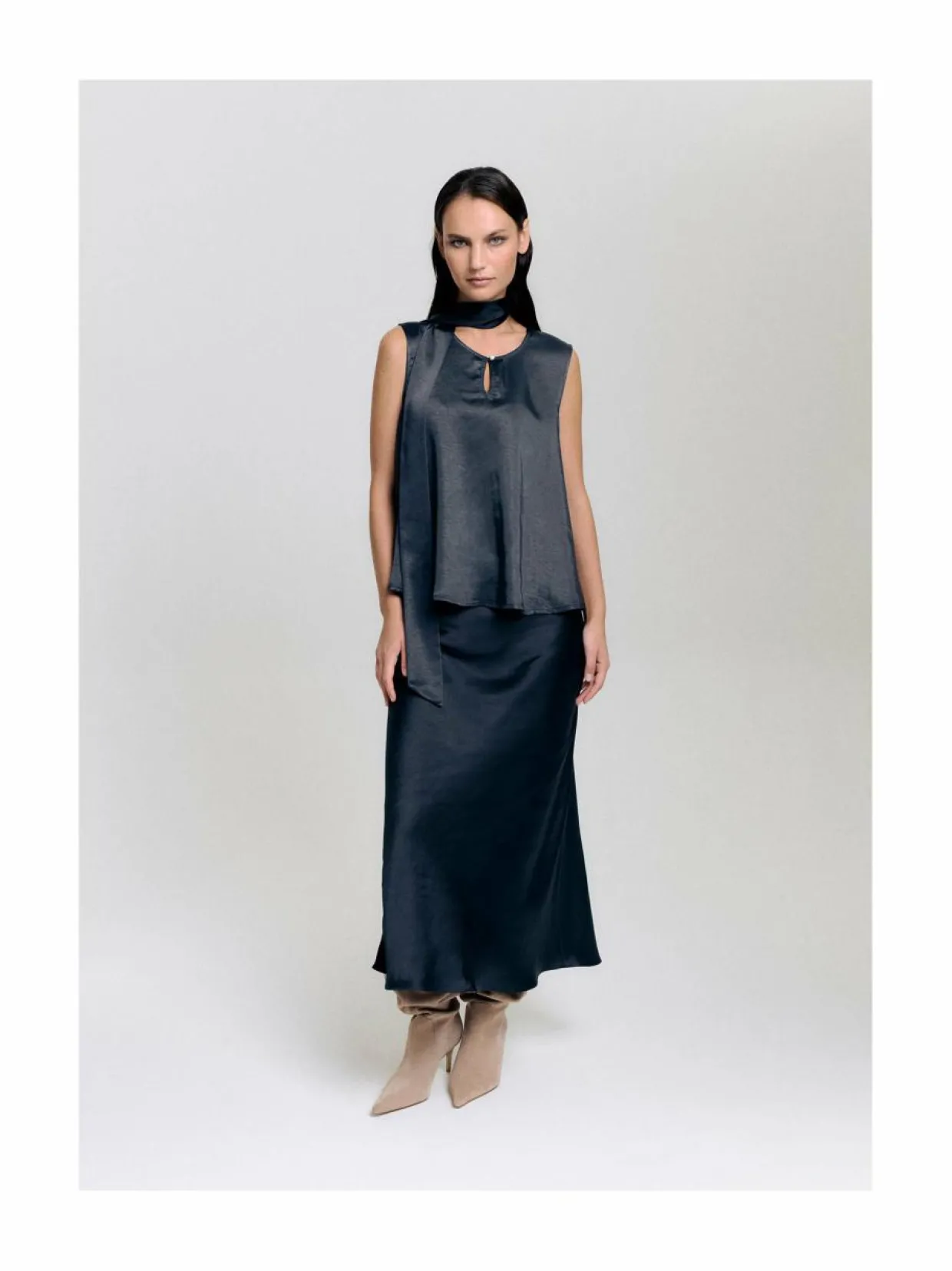 Materiaali95 % polyesteri, 5 % elastaani Hoito-ohjeetHienopesu. Noudata valmistajan hoito-ohjetta! VäriNAVY AvainsanatIda Sjöstedt, hame, satiini, juhlahame
