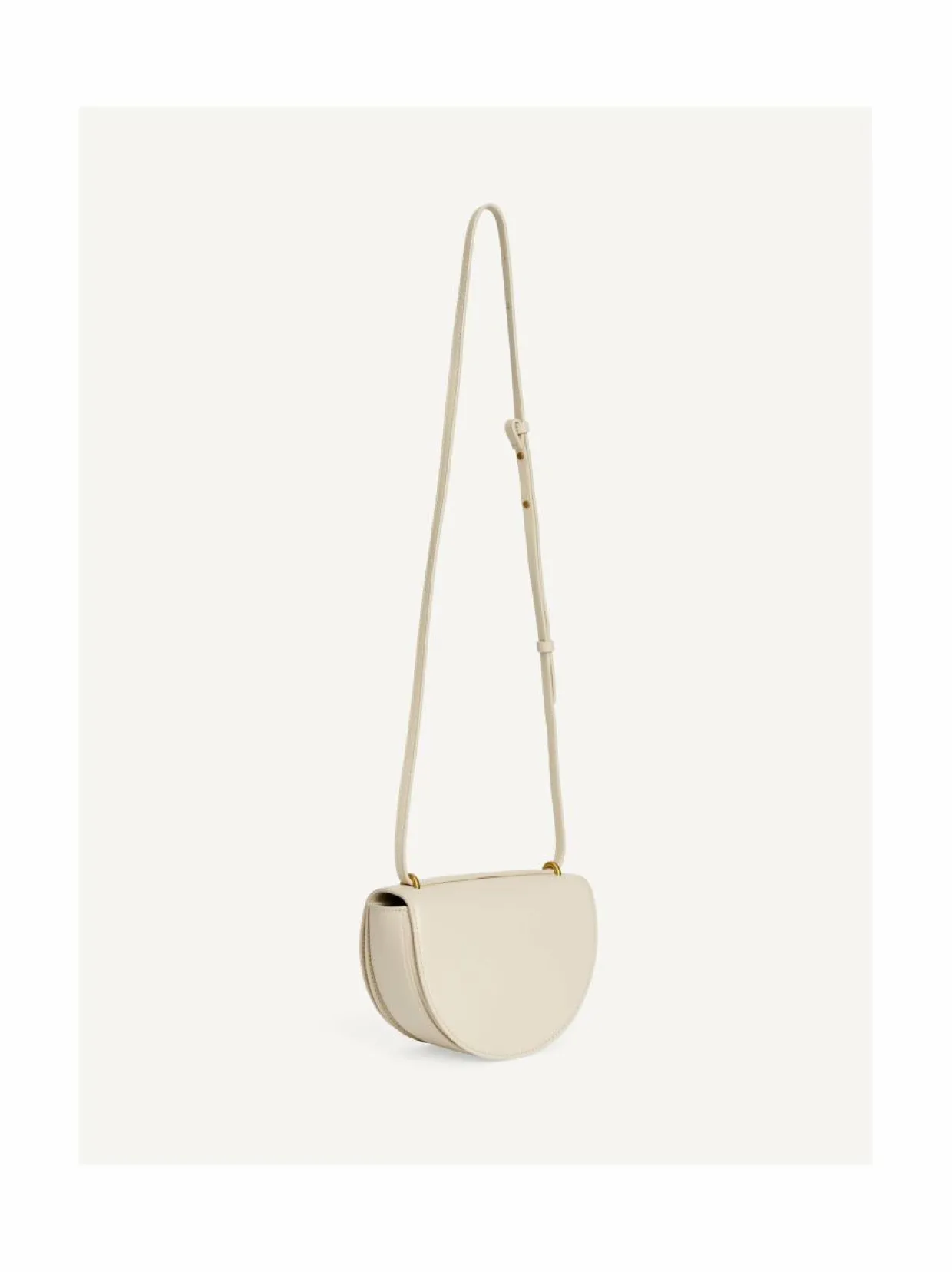 By Malene Birgerin Cebelle-laukku on täydellinen yhdistelmä modernia minimalismia ja ylellisiä yksityiskohtia. Sen tyylikäs puolikuun muoto ja näyttävä kultainen solki tekevät laukusta ajattoman valinnan niin arkeen kuin juhlaan. Säädettävä olkahihna mahdollistaa yksilöllisen käytön ja mukavuuden, kun taas kompakti sisätila tarjoaa tilaa tärkeimmille tavaroille. Laukussa on yksi päälokero ja sisäpuolella on pieni tasku. Tämä huolella valmistettu nahkalaukku on osoitus By Malene Birgerin taidosta yhdistää skandinaavinen yksinkertaisuus ja hienostunut muotoilu.