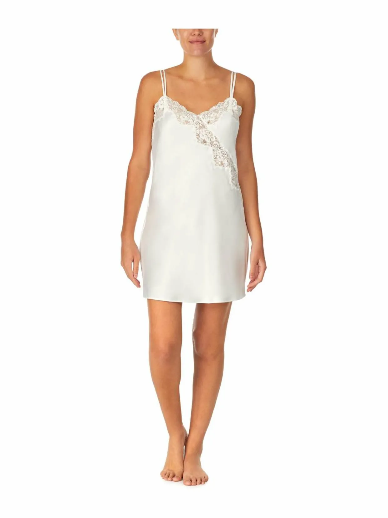 Pehmeästä ja kiiltävästä materiaalista valmistettu kaunis yöpita, jossa on pitsiyksityiskohtia. Yöpaidassa kapeat säädettävät olkaimet.