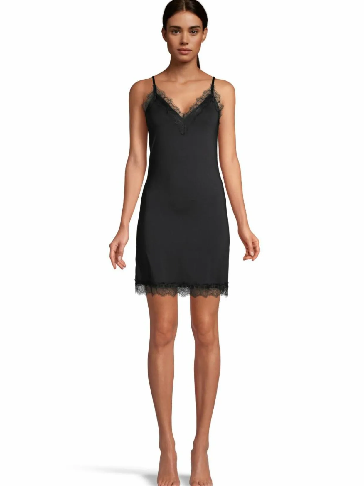 Rosemunde Chemise-mekkoa somistavat helman ja v-pääntien hurmaavat pitsit. Kapeiden olkainten pituutta voi säätää. Monikäyttöinen vaate toimii mainiosti myös alusmekkona.