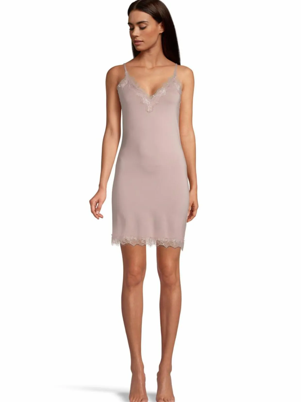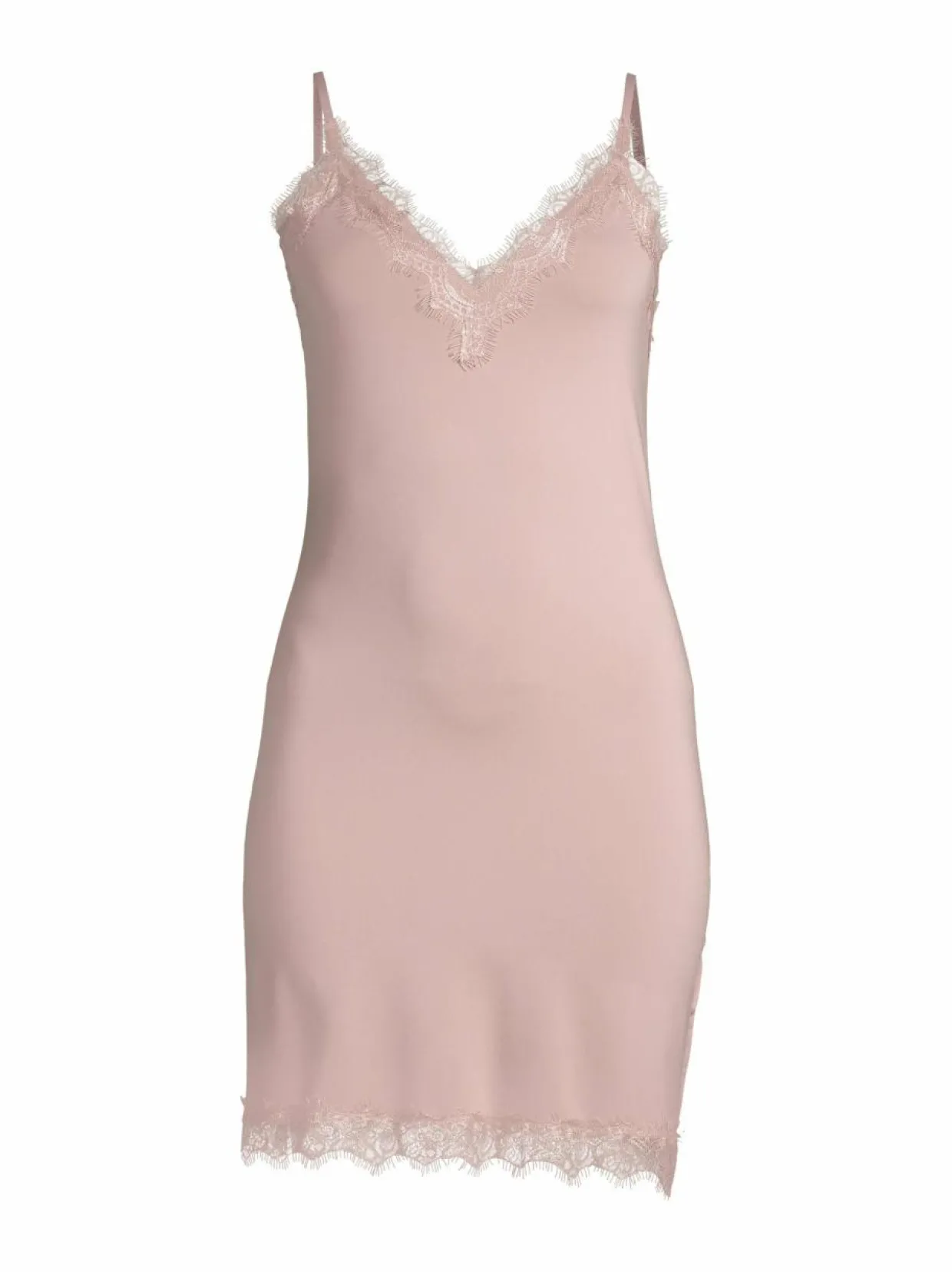 Rosemunde Chemise-mekkoa somistavat helman ja v-pääntien hurmaavat pitsit. Kapeiden olkainten pituutta voi säätää. Monikäyttöinen vaate toimii mainiosti myös alusmekkona.