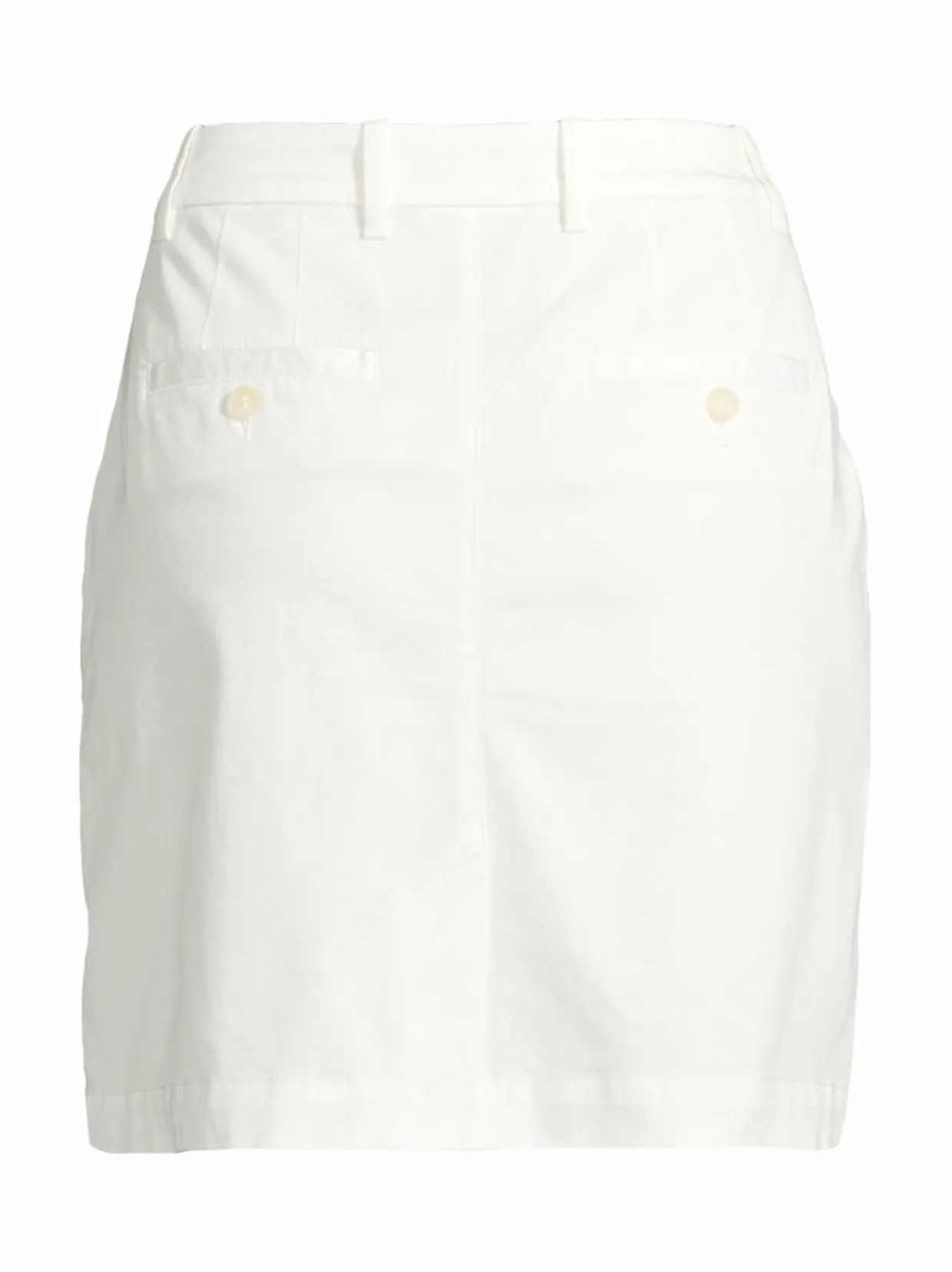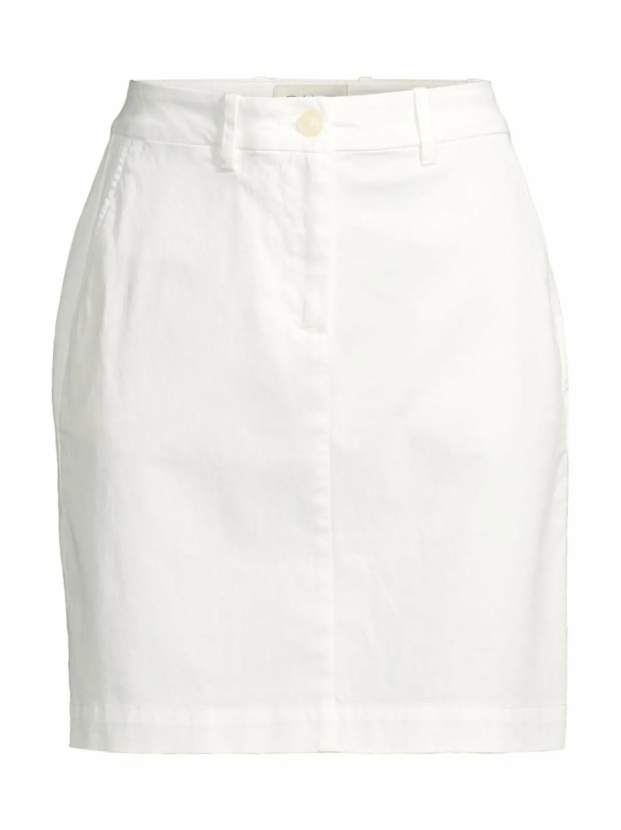 Gant-merkin Chino-hame on valmistettu pehmeästä ja mukavasta materiaalista, joka on valmistettu luomupuuvillasta, modaalista ja polyamidista. Hameessa on klassinen a-linjainen istuvuus ja sen pituus on hieman polven yläpuolella. Hameessa on kaksi taskua edessä ja kaksi taskua takana. Hameessa on vetoketju ja napit edessä. Luomupuuvilla on ympäristöystävällinen vaihtoehto tavalliselle puuvillalle, koska sen viljelyssä ei käytetä keinotekoisia lannoitteita tai torjunta-aineita.