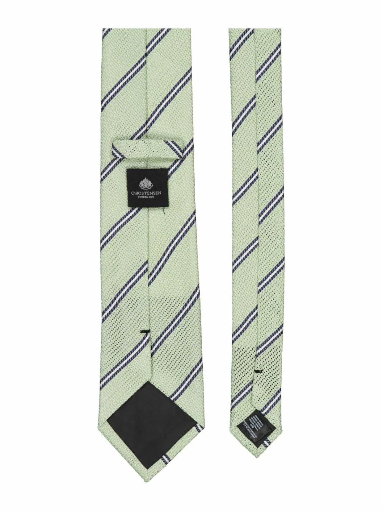 Klassinen solmio hienossa jacquard-raitakuosissa. Amanda Christensenin Classic-solmio on valmistettu ylellisestä silkistä. Se viimeistelee juhla- ja bisnespukeutumisen elegantilla tyylillä.
