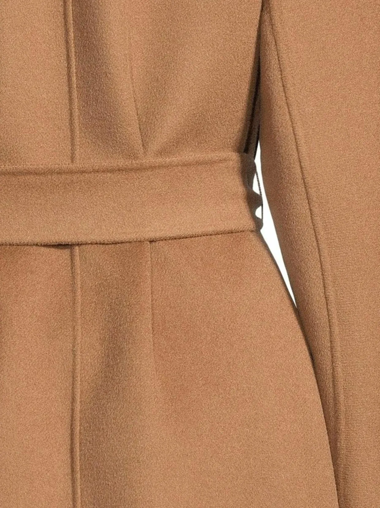 Materiaali88 % villa, 6 % silkki, 6 % kashmir Hoito-ohjeetKemiallinen pesu Väri058 HASELNUSS Avainsanatklassinen takki, villakangastakki, kangastakki, Max Mara Studio, päällystakki, talvitakki, silkki, kashmir