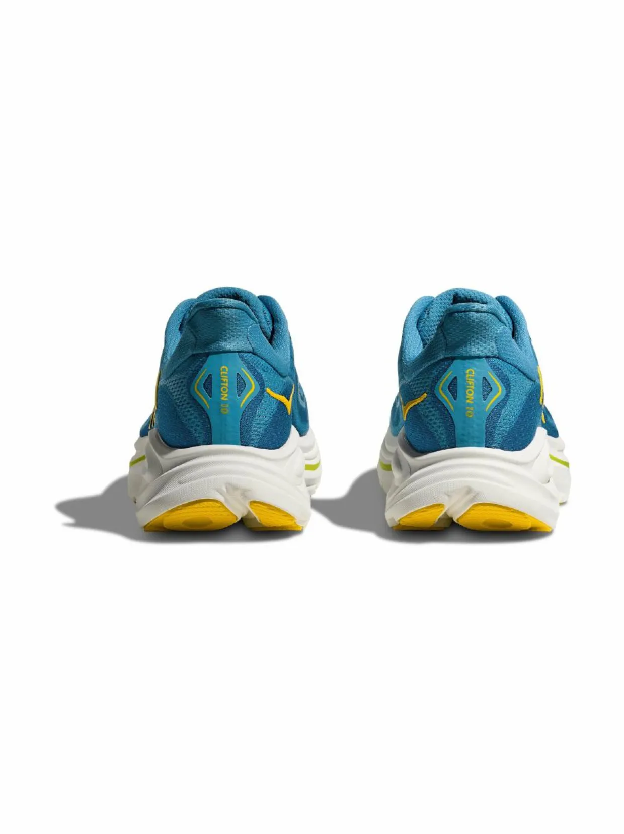 Clifton 10 -kengät ovat mukavat treeni- ja juoksukengät. Päällinen on hengittävää jakardineulosta, joka takaa hyvän hengittävyyden ja mukavuuden juoksulenkin aikana.Juoksukengissä on muutettu kengän droppia, ts. korkeuseroa kantapään ja jalan etuosan välillä. Kantaosa on nyt saanut kolme millimetriä korkeamman pohjan, ja droppi on noussut 8 mm:iin.Välipohja on valmistettu CMEVAsta, joka takaa hyvän ja mukavan vaimennuksen liikunnan aikana.