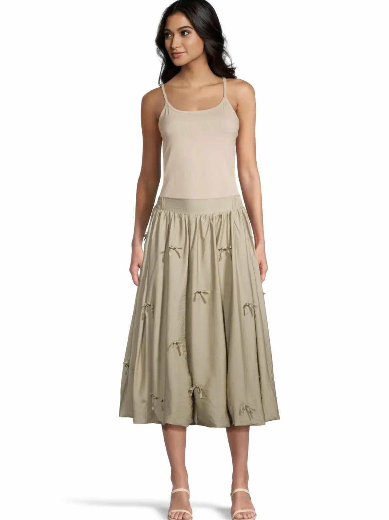 Tämä hame on suunniteltu luomaan ilmava siluetti. Sen materiaalina on pehmeä ja kestävä sekoite puuvillaa ja polyamidia, joka tekee siitä miellyttävän päällä. Hameessa on kauniisti laskeutuva muoto ja yksityiskohtina pienet solmut, jotka lisäävät siihen persoonallisuutta. Hame sopii erinomaisesti monenlaisiin tilaisuuksiin. Sen monipuolisuus tekee siitä täydellisen valinnan vaatekaappiisi.