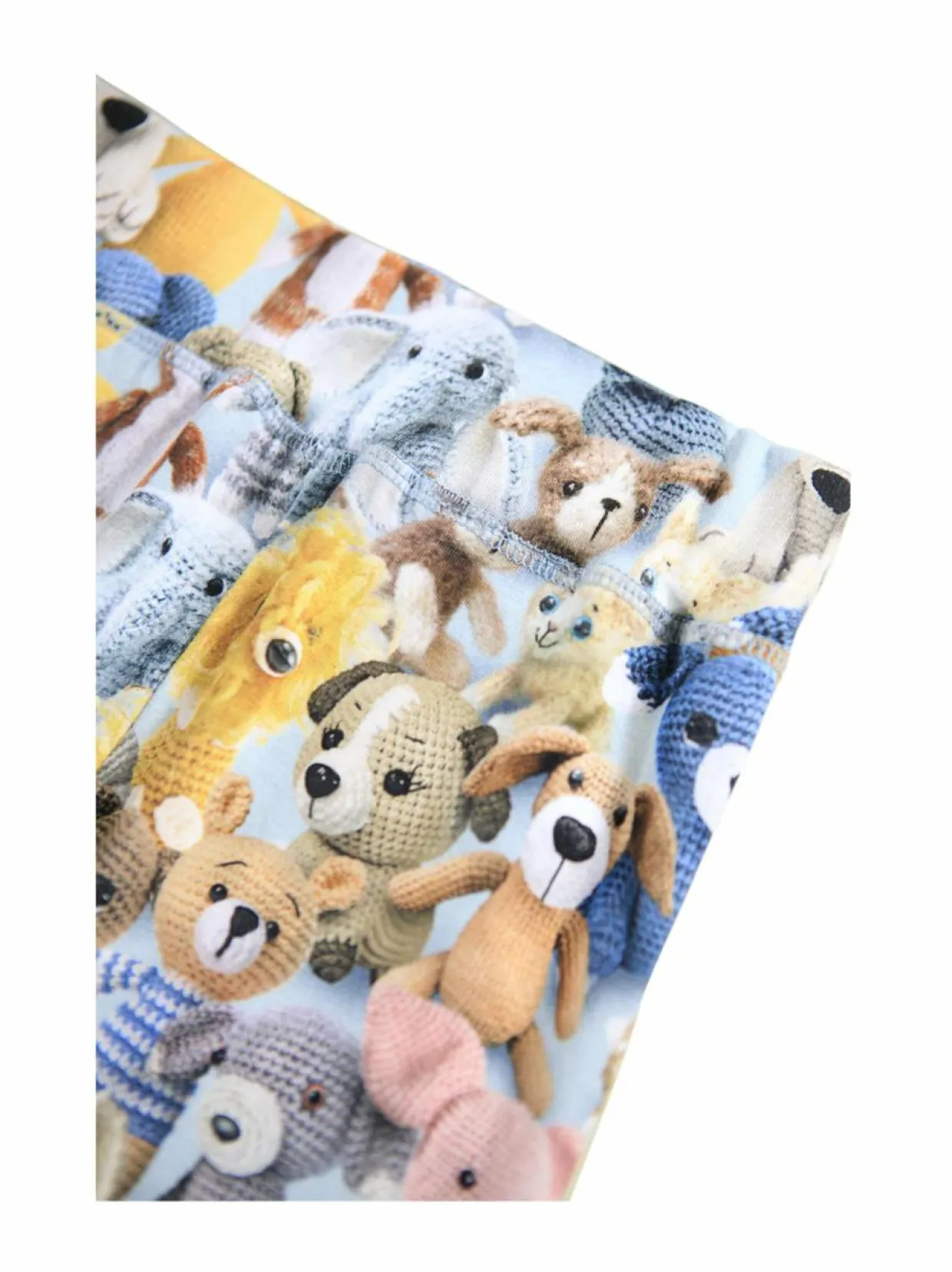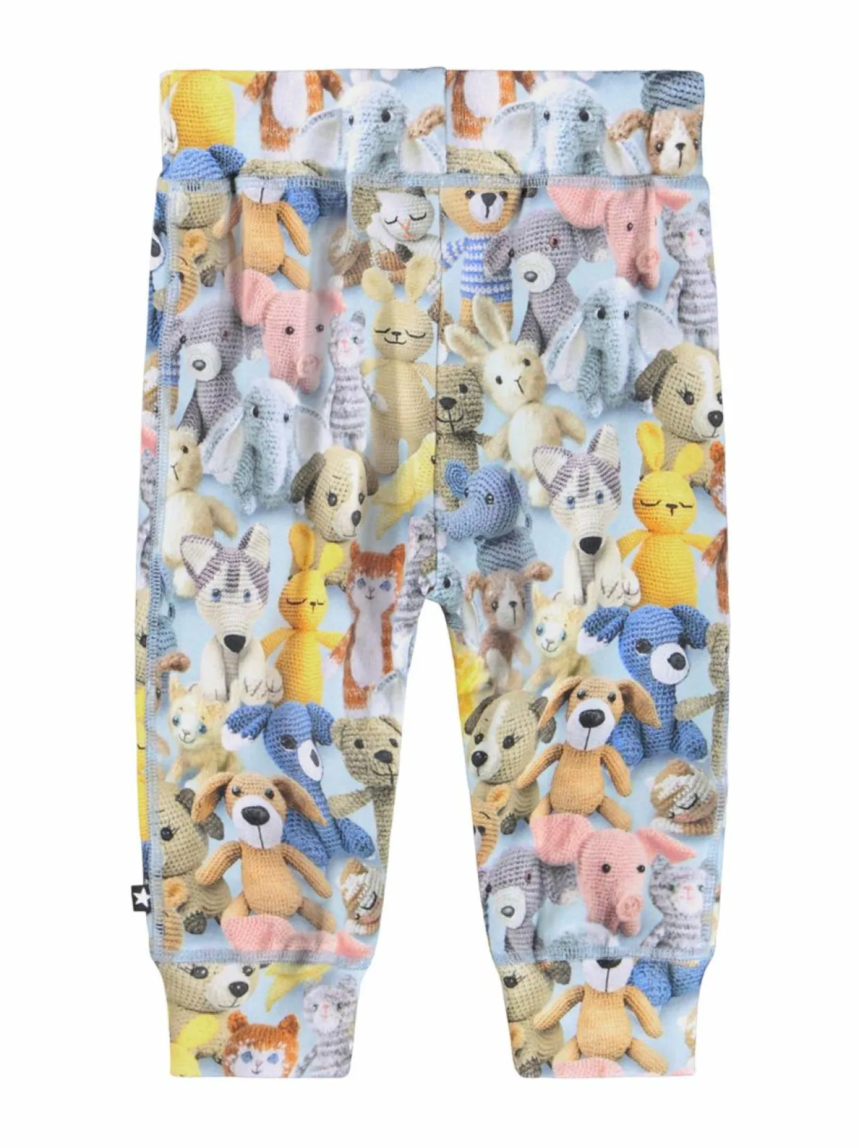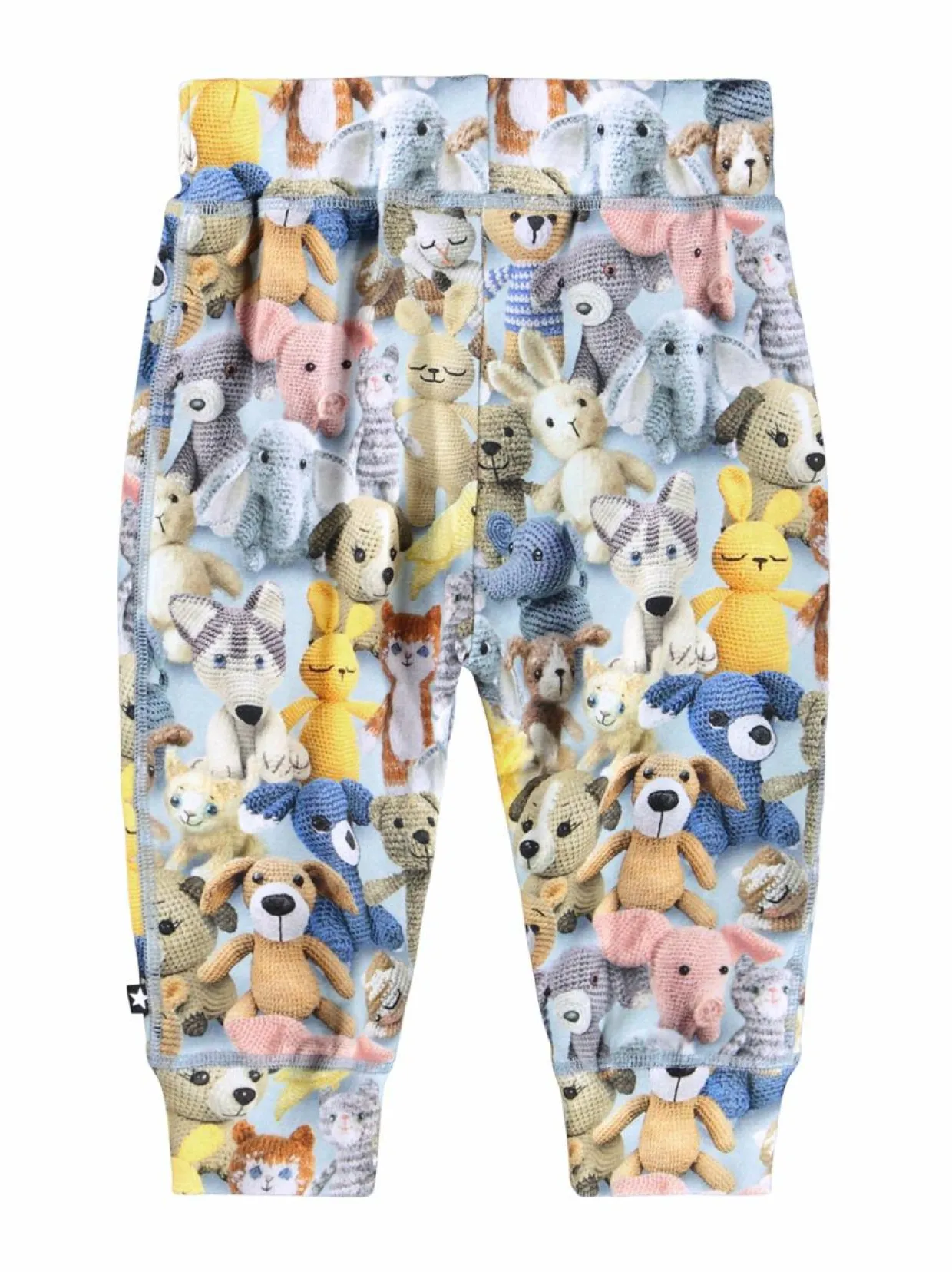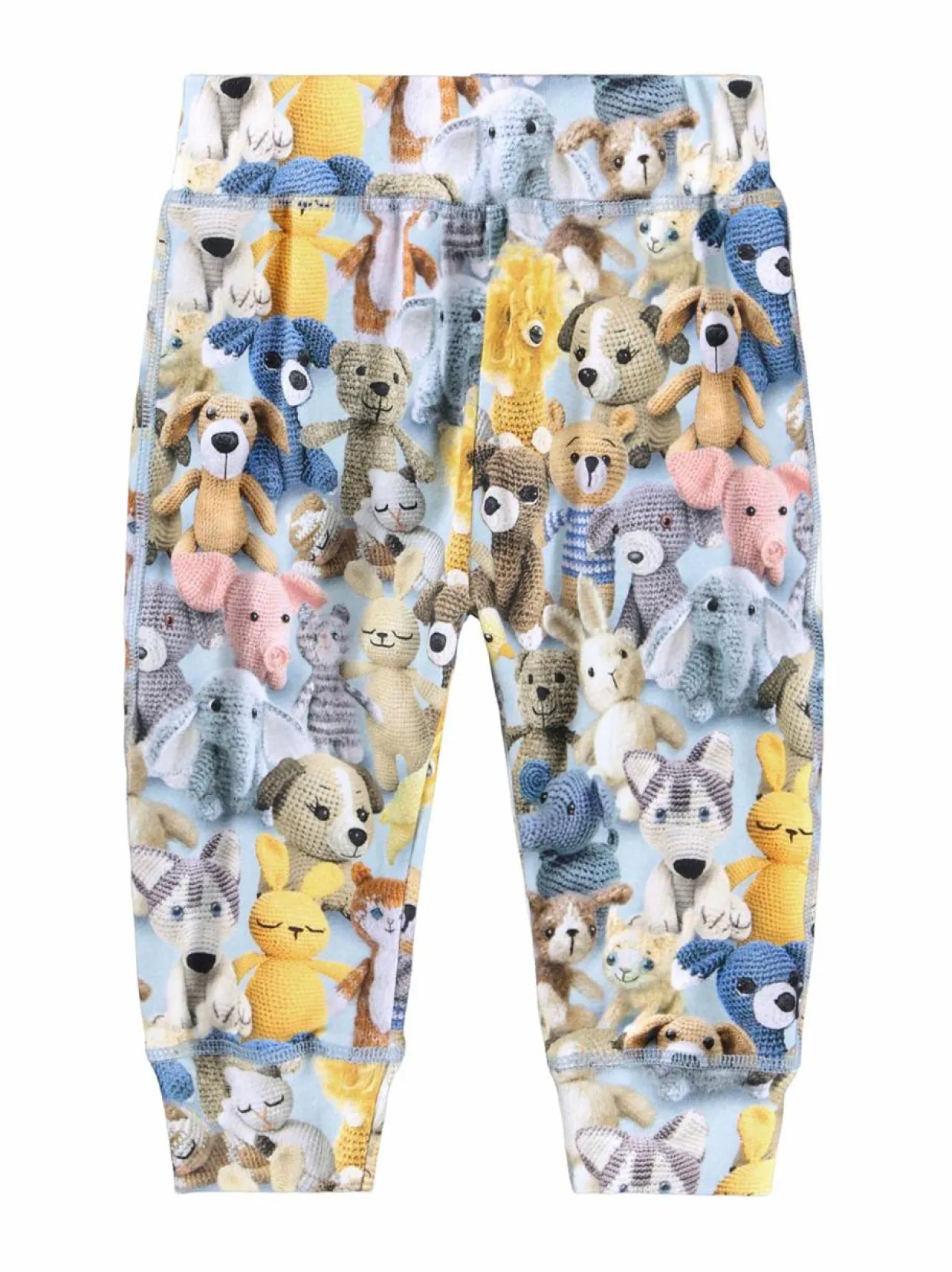Nämä pehmeät ja mukavat housut ovat täynnä iloa ja leikkisyyttä. Housujen pinnalla toistuu ihastuttava kuvio, jossa on lukuisia virkattuja pehmoleluja. Housut on valmistettu pehmeästä puuvillasta, joka tuntuu mukavalta iholla. Joustava vyötärö ja lahkeensuut varmistavat hyvän istuvuuden ja liikkumavapauden.