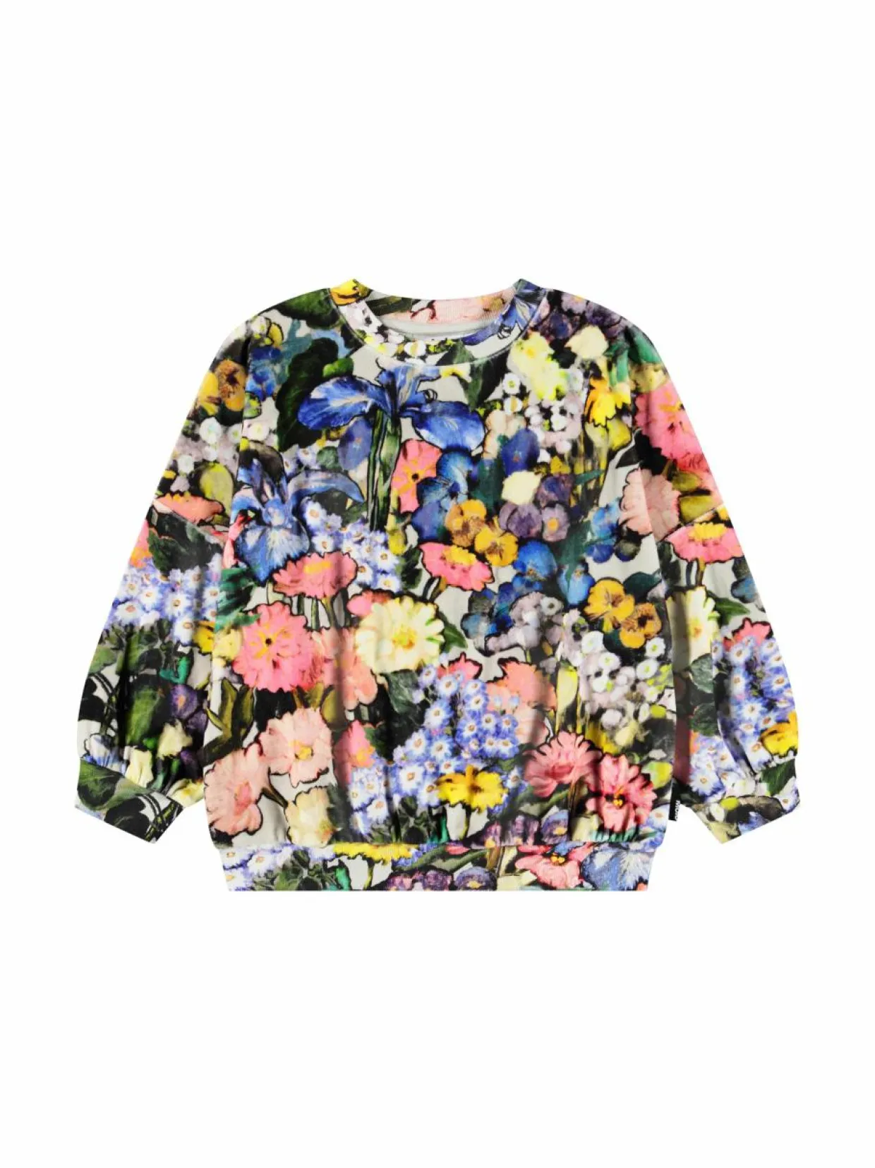 Molon mukava ja rento collegepaita pehmeästä luomupuuvillasta, jossa on upea painettu kukkakuvio. Pääntiellä, helmassa ja hihansuissa on joustava resori.