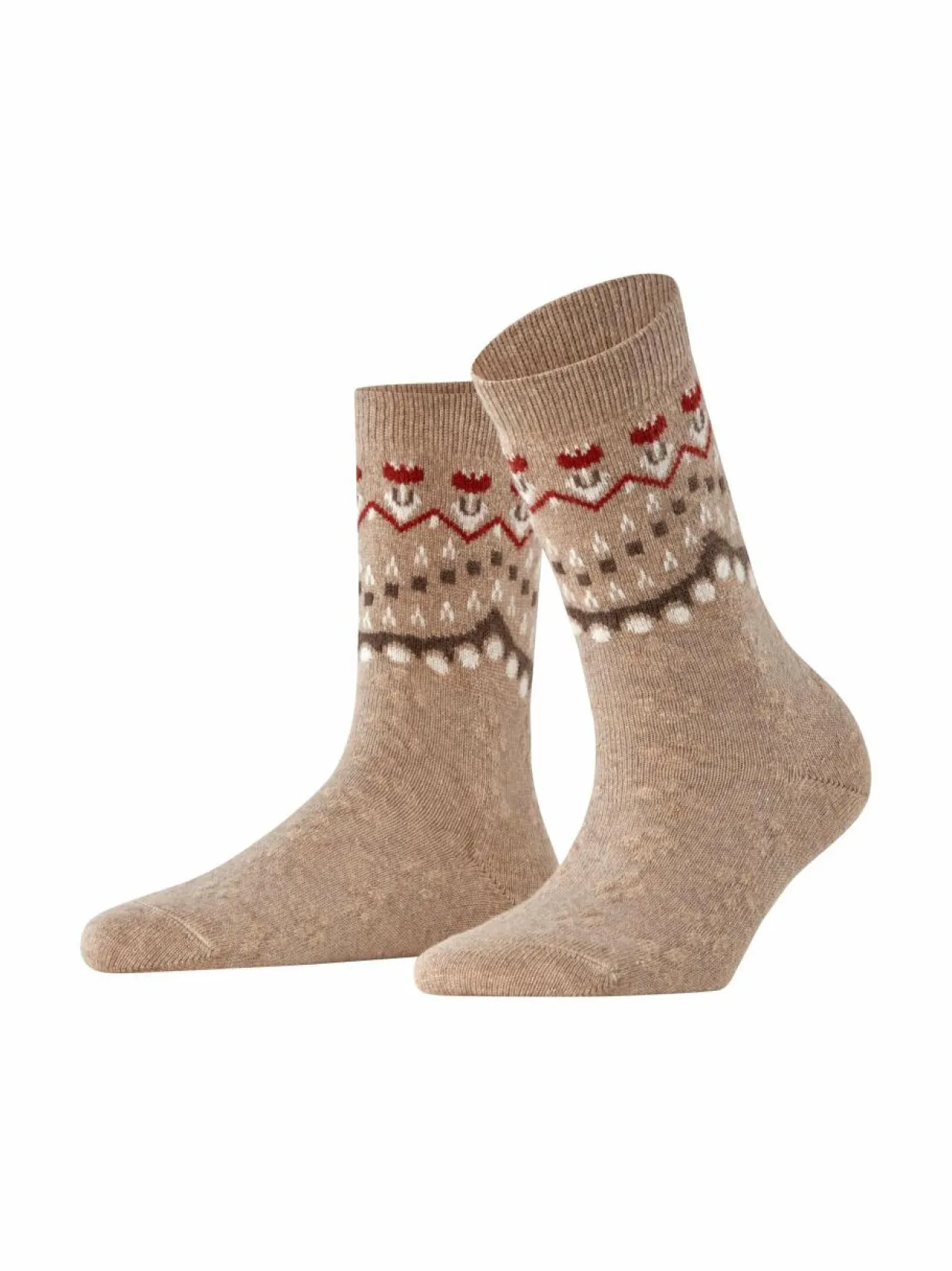Näissä ylellisissä ja mukavissa sukissa yhdistyvät FALKE Cosy Wool -kankaan testatut ominaisuudet ja moderni tulkinta norjalaisesta ilmeestä. Klassinen talvifolk-kuosi yhdistyy herkkiin, naisellisiin yksityiskohtiin, kuten kukka-aiheisiin ja hienovaraisiin koristeisiin. Kestävän materiaalin ansiosta, joka koostuu merinovillasta, kashmirista ja viskoosista, sukat tarjoavat erityisen pehmeän ja lämpimän käyttömukavuuden. Vahvistetut, kovaa kulutusta kestävät vyöhykkeet takaavat myös korkean kestävyyden, ja täydellinen FALKE-istuvuus viimeistelee mukavuuden tunteen.