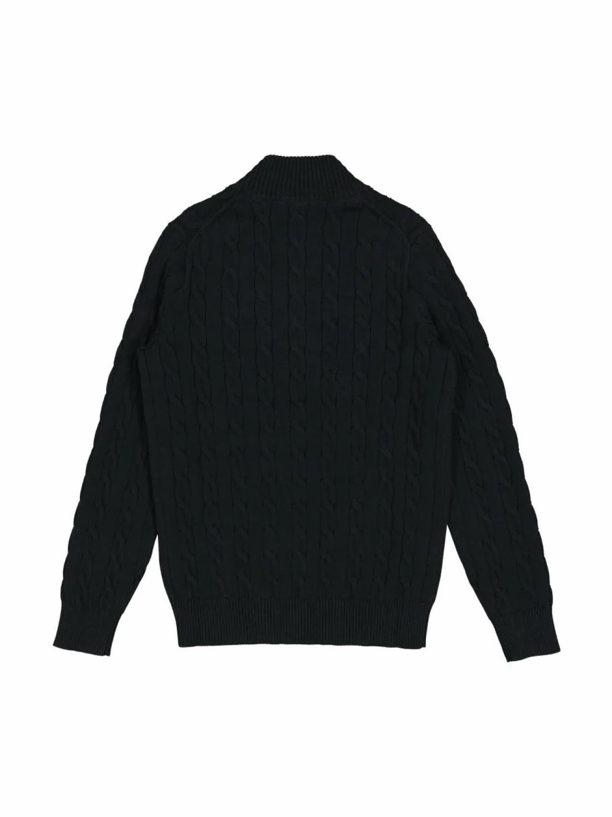 Puuvillainen neulepaita, jossa on vetoketjullinen ribattu kaulus. Shield-logomerkki on sijoitettu vasempaan rintaan. Palmikkoneule on klassinen vaatekappale, joka on helposti yhdistettävä moniin alaosiin.