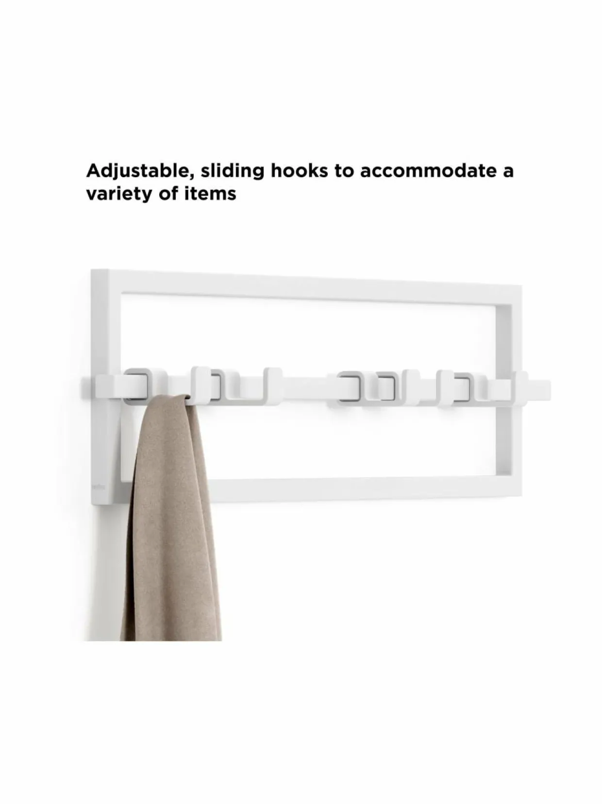 Umbran teräksestä valmistettu Cubiko sopii täydellisesti asusteiden, takkien ja huivien ripustamiseen pitäen samalla tilan järjestyksessä. Tämä helppokäyttöinen säilytysratkaisu on helppo asentaa ja sitä voi käyttää kotisi useissa huoneissa, kuten esim. eteisessä, kylpyhuoneessa tai makuuhuoneessa. Funktionaalisen ja sileän muotoilunsa ansiosta vaatteet ja asusteet eivät ota naulakon reunoihin kiinni.