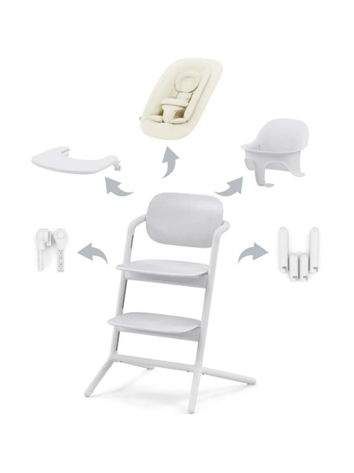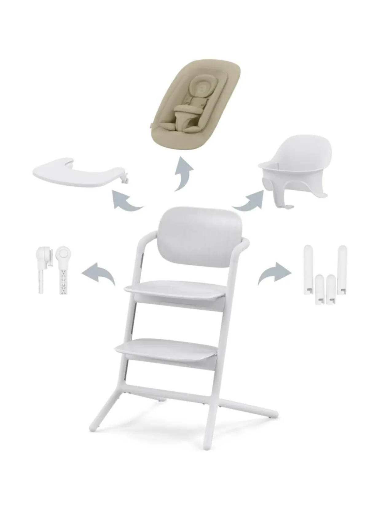 Cybex Lemo 4in1 set syöttötuolipaketti sopii käyttöön lapselle vastasyntyneestä alkaen. Paketti sisältää Lemo tuolin, Bouncer vastasyntyneen istuimen, Baby Set etukaaren 6kk+, tarjottimen ja tarvittavat adapterit vastasyntyneen istuimen kiinnitykseen. Lisävarusteena voit ostaa vastasyntyneen istuimelle jalat, jolloin se toimii sitterinä lattialla.