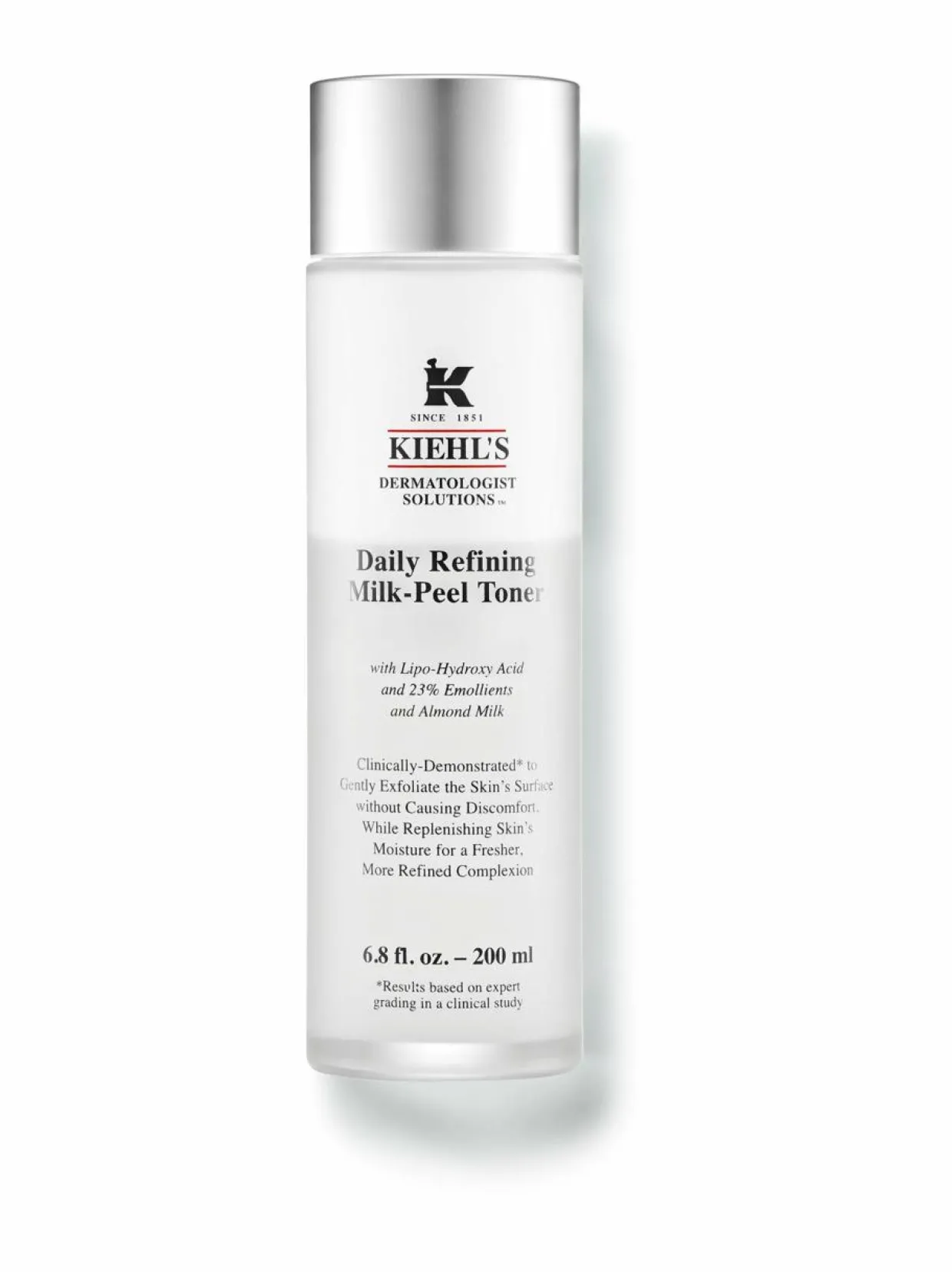 Kiehl’s Daily Refining Milk-Peel Toner on päivittäiseen käyttöön tarkoitettu, ihoa tasapainoittava ja kosteuttava kuoriva maitomainen kasvovesi. Sisältää ihoa kirkastavaa Lipo-Hydroksi -happoa ja ihoa pehmentävää mantelimaitoa.