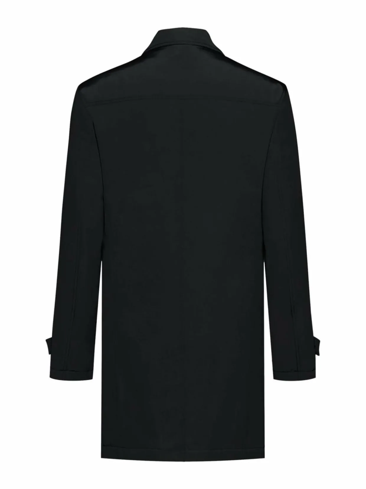 Vettähylkivässä takissa on avoimet etutaskut ja sileäpintainen vuori. Takana helmassa on halkio. Takki suljetaan vetoketjulla ja napeilla. Kierrätysmateriaalista valmistettu tekninen kangas muokkautuu vähitellen käyttäjän vartalon mukaiseksi.