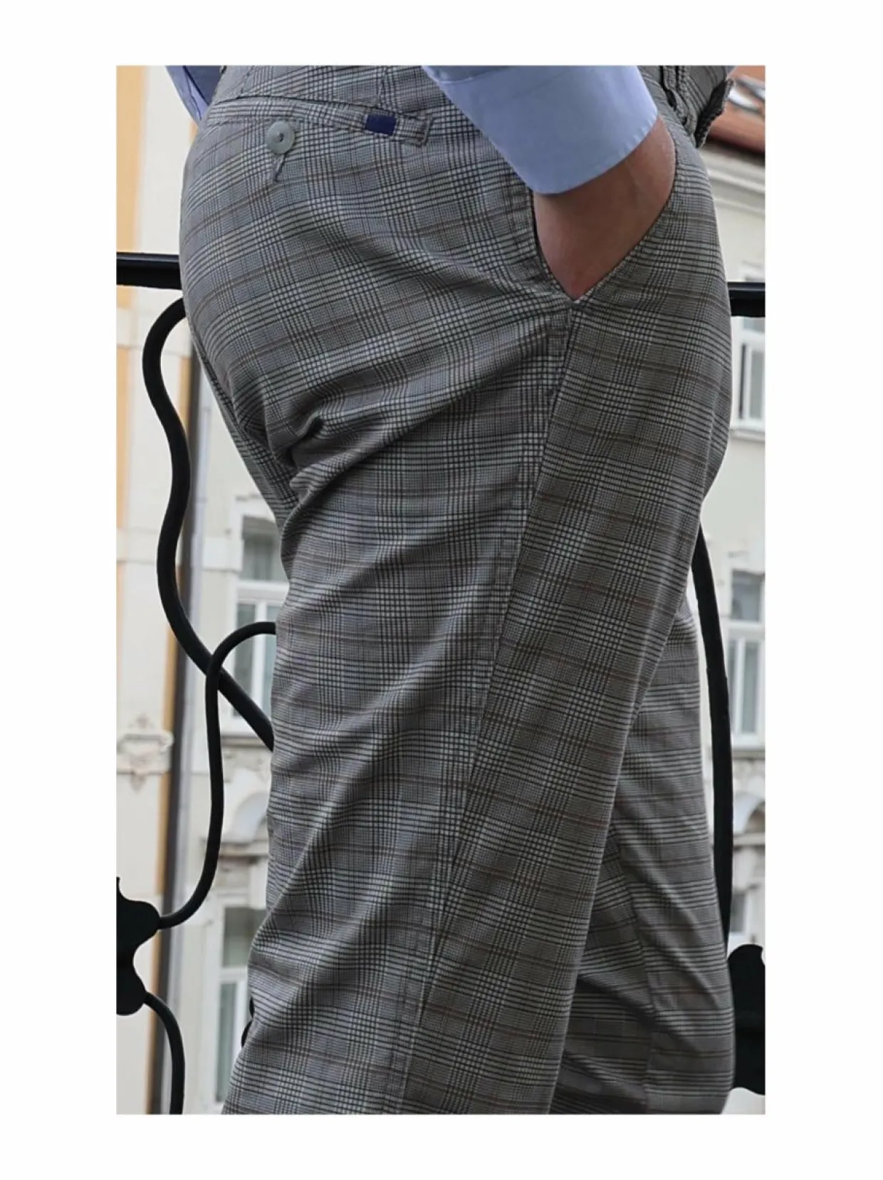 Ajattoman tyylikkäät Denes-housut, jossa hillitty ruutukuosi.