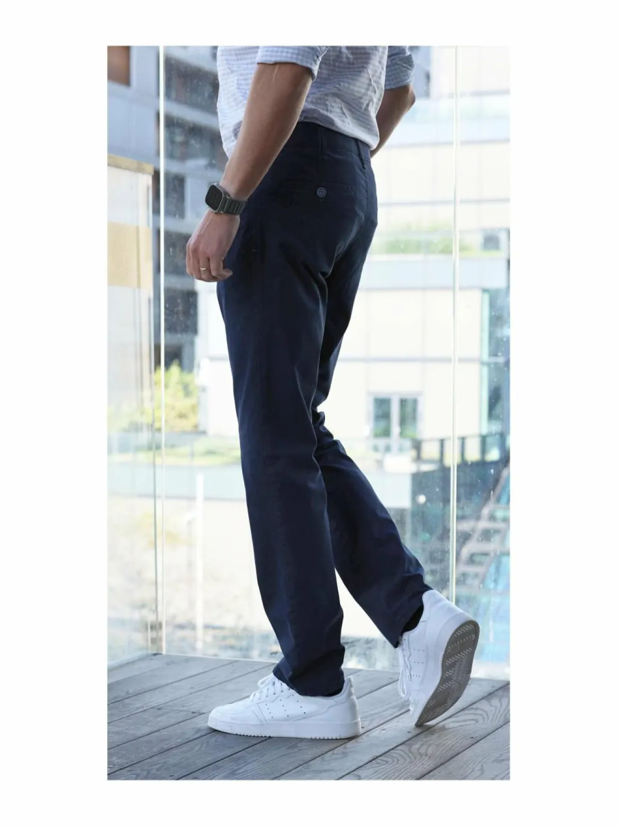 Buzo Denes Cool Max -housut on valmistettu pehmeästä puuvillasekoitteesta, johon lisää mukavuutta ja joustoa ripaus elastaania. Nämä housut ovat mainio valinta, kun farkut tuntuvat liian rennoilta ja suorat housut turhan muodollisilta. Housuissa on tuplavyölenkit.