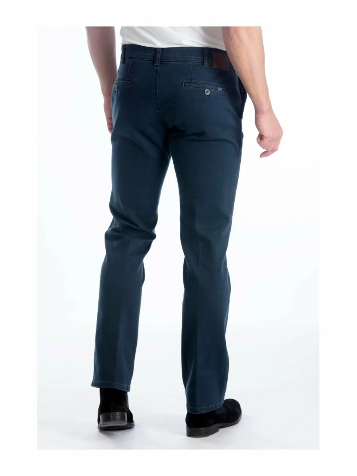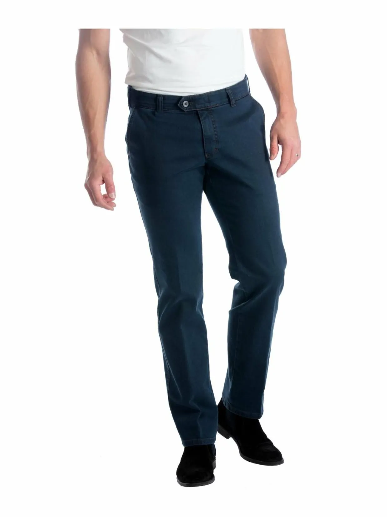 Rennoissa Denes-farkuissa on mukavaa joustoa. Etuhalkiossa on vetoketju, nappi sekä hakanen. Housuista on C- ja D-mitoitus.